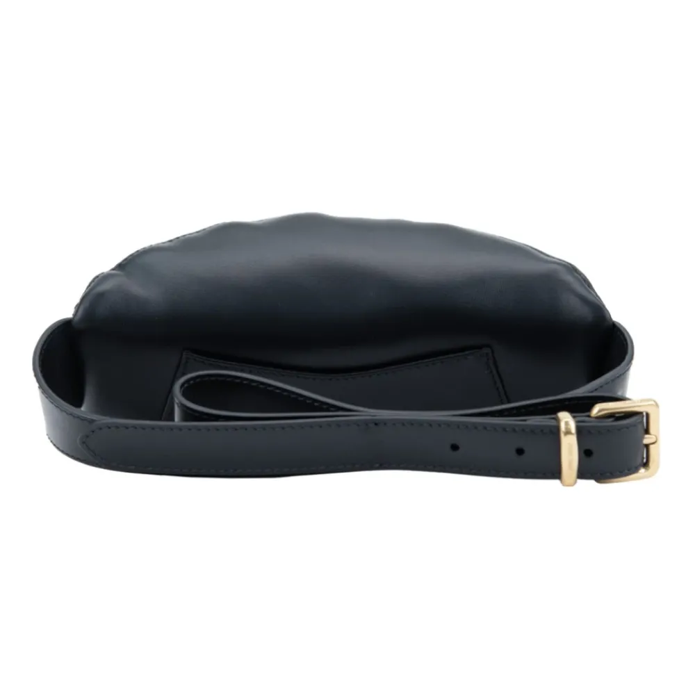 Geef je stijl een boost met deze chique leren heuptas, ontworpen door Miu Miu. Met een strakke zwarte afwerking en goudkleurige metalen accenten, is dit accessoire perfect om een vleugje luxe toe te voegen aan elke outfit. Belangrijkste kenmerken: Zwart | Leer | Verstelbare leren schouderriem | Goudkleurige metalen merkletters | Mini envelopzak op de achterkant | Afmetingen en pasvorm: B21.5cm x H11cm x D7.5cm |