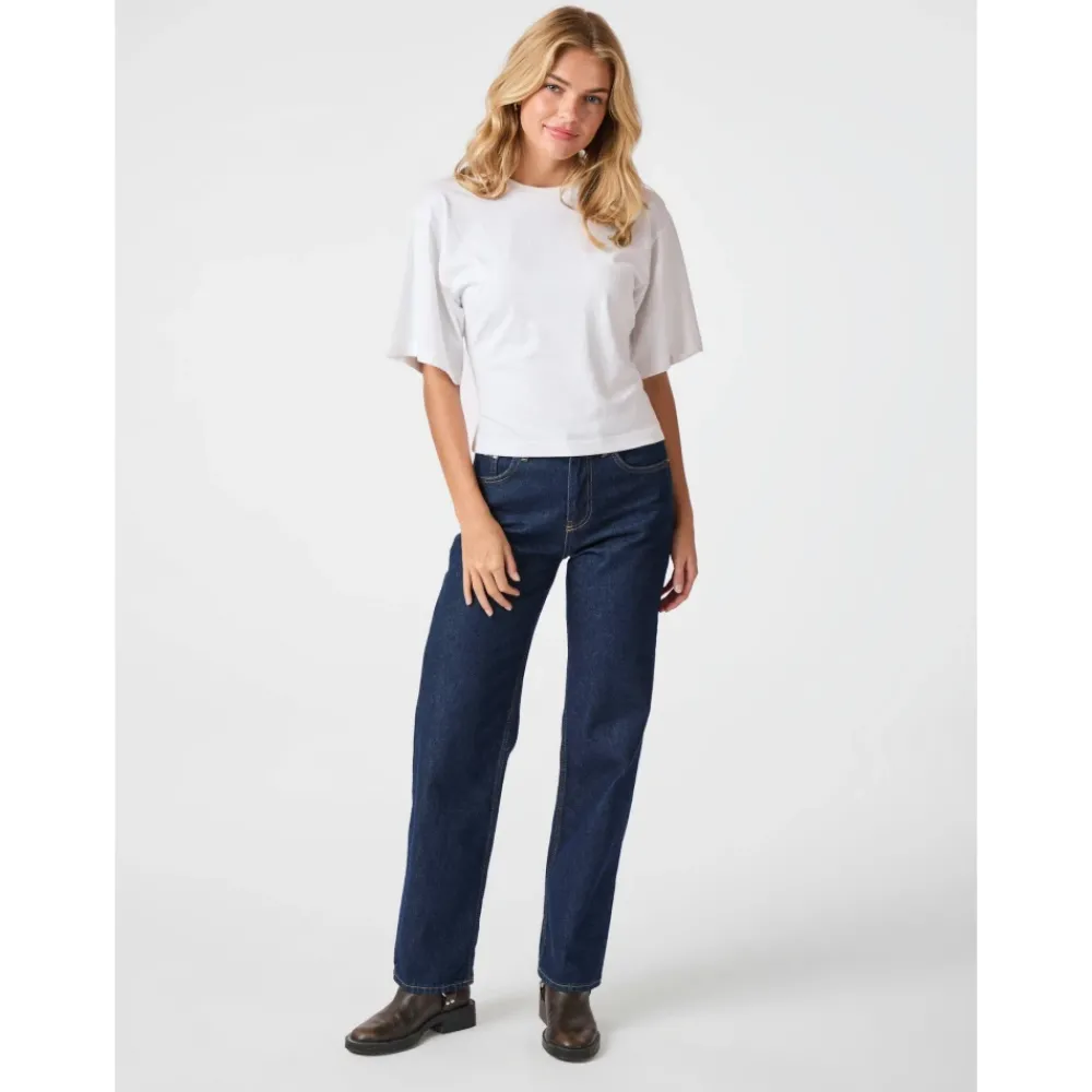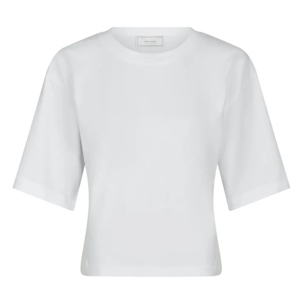 Ontdek de Neo Noir Boxy Tee, een perfecte mix van stijl en comfort. Deze alledaagse essential heeft een uniek taille detail dat een vleugje verfijning toevoegt aan je casual garderobe. Belangrijkste kenmerken: Wit | Katoen | Boxy mouwen | Lage schoudernaad | Getailleerde taille | Afmetingen en pasvorm: Boxy fit | Samenstelling en onderhoud: 100% katoen | Machinewas koud, droogtrommel laag.