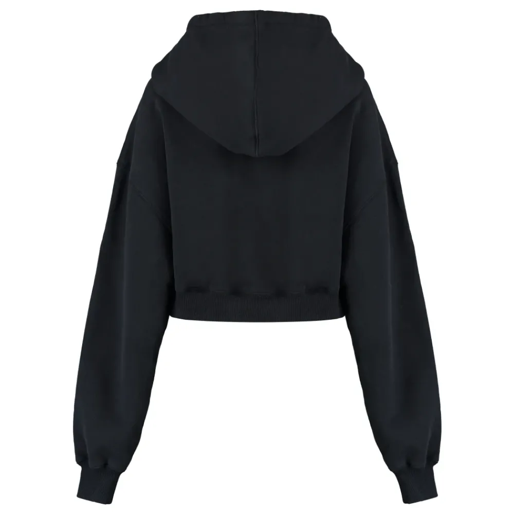 De Off-White Cropped Hoodie heeft een street-ready cropped silhouet met praktische details. Het ontwerp met capuchon is afgewerkt met geribbelde manchetten en een geribbelde onderkant voor een nette look. Belangrijkste kenmerken: Zwart | Gebroken wit | Katoen | Capuchon | Cropped silhouet | Geribbelde manchetten en onderkant | Samenstelling & onderhoud: 95% Katoen, 5% Elastaan | 100% Katoen | 100% Polyester