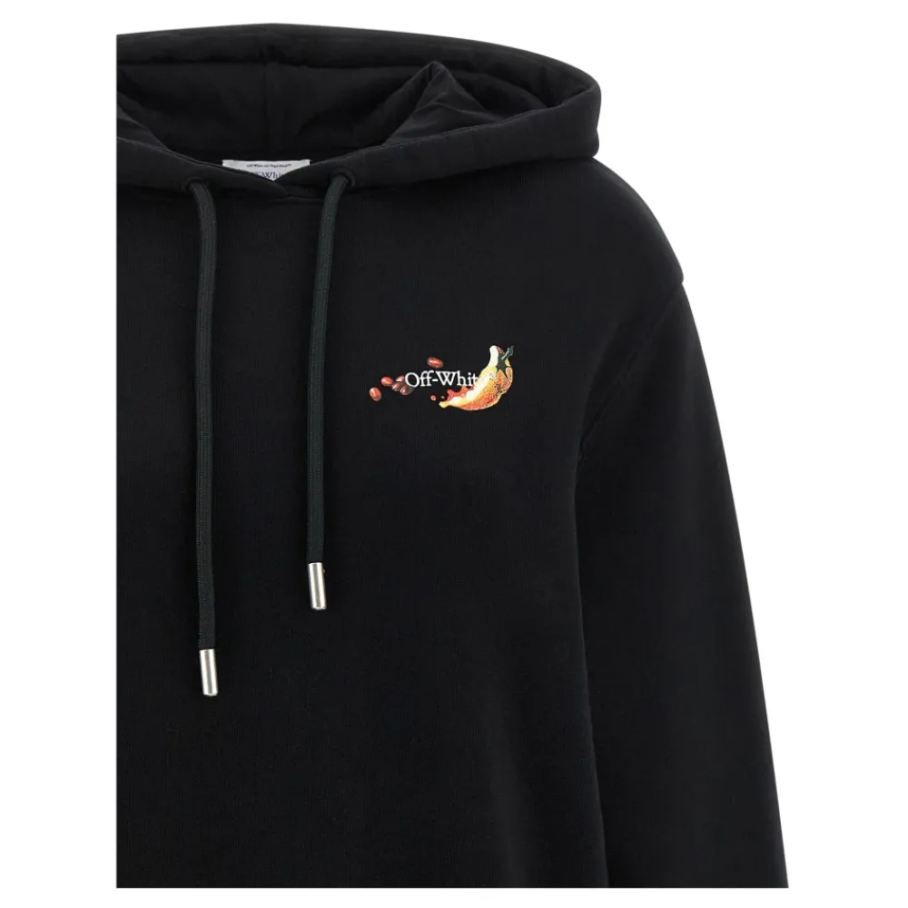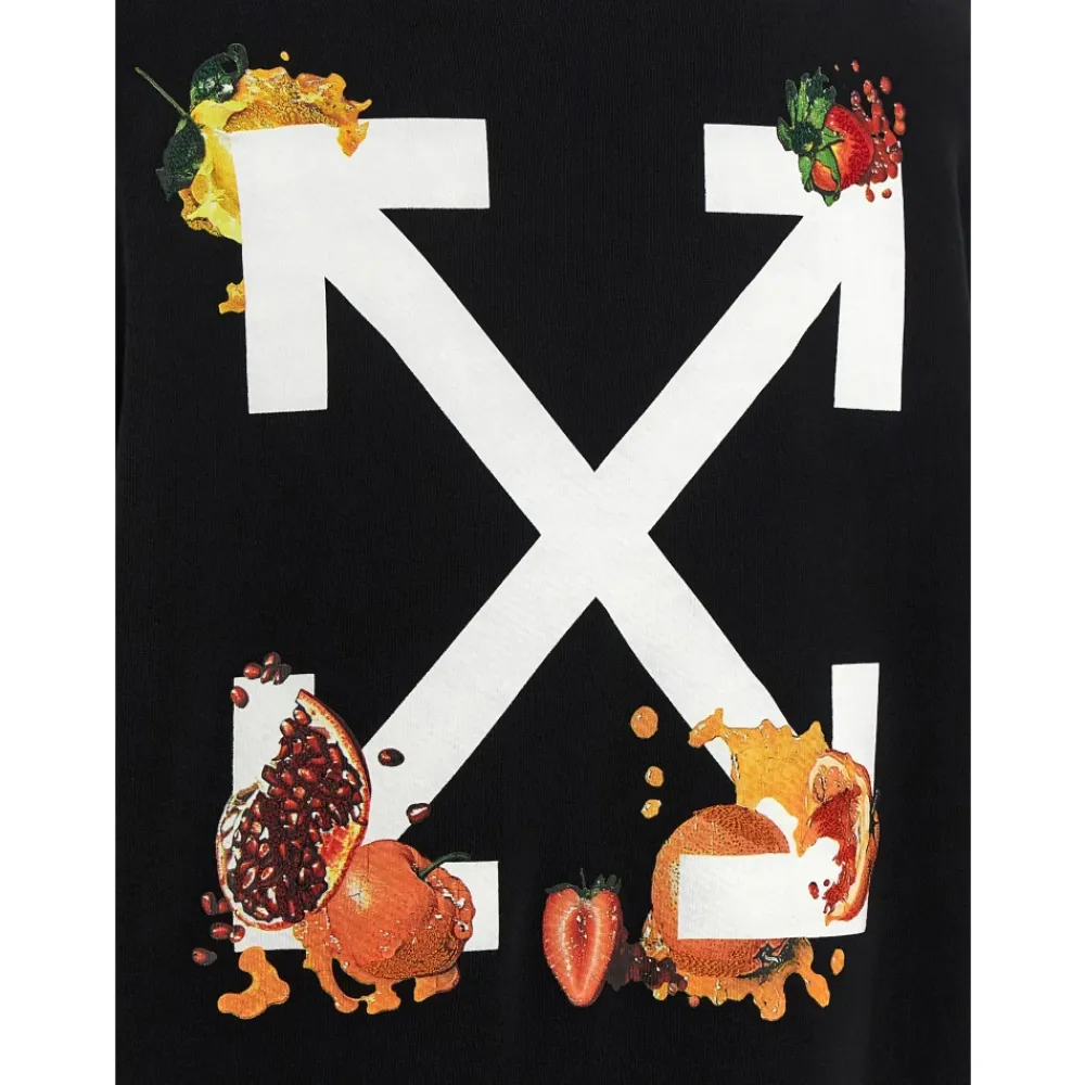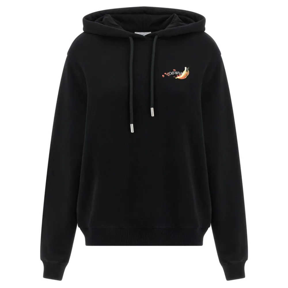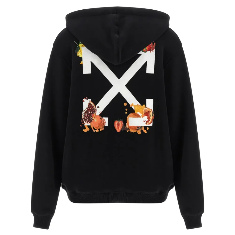 De Emb Fruits Arrow Hoodie van Off-White is een trui van geborsteld katoen met geborduurde fruit- en pijlgraphics op de voor- en achterkant. Hij is ontworpen voor een relaxte, oversized look met lange mouwen met manchetten en verlaagde schouders. Belangrijkste kenmerken: Zwart | Katoen | Geborstelde afwerking voor extra zachtheid | Met capuchon | Pullover-model | Geribbelde manchetten | Emb Fruits Arrow geborduurde print op voor- en achterkant | Verlaagde schouders | Lange mouwen met manchetten | Afmetingen & pasvorm: Oversized pasvorm | Samenstelling & verzorging: 100% katoen