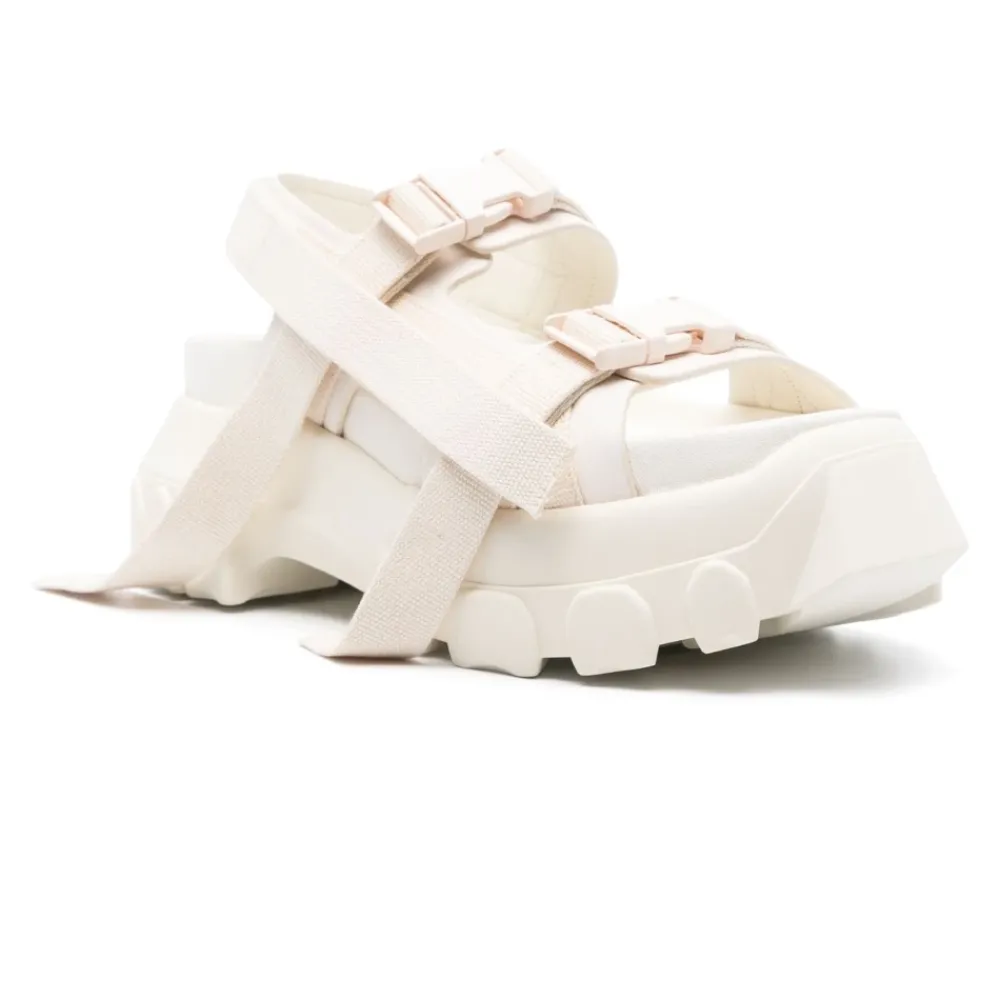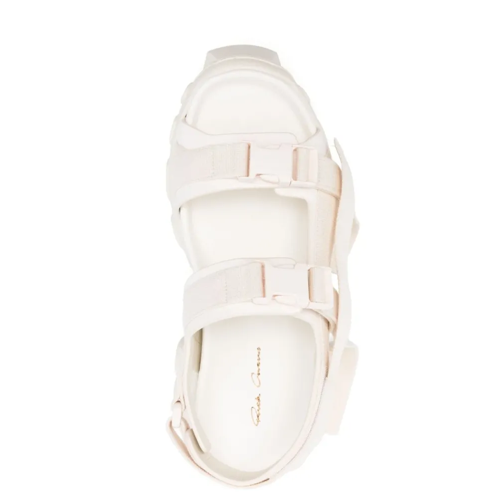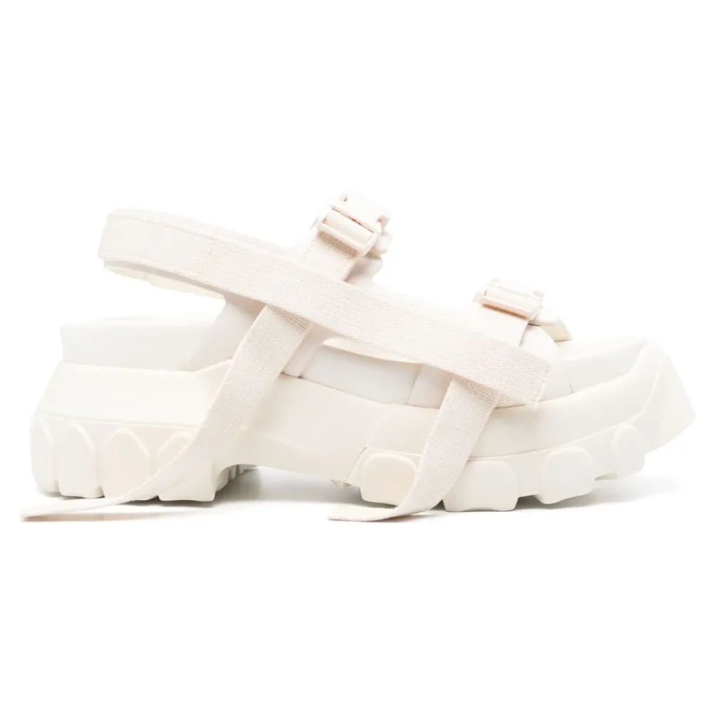 Geef je casual look een boost met deze witte sandalen met open teen van Rick Owens, gemaakt van premium rundleer voor een stijlvolle en comfortabele pasvorm. Belangrijkste kenmerken: Wit | Rundleer | Rubberen zool voor extra comfort | Open teen | Samenstelling en onderhoud: 100% Rundleer | Rubberen zool