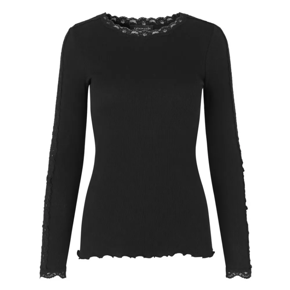 Mooie longsleeve kanten top van Rosemunde met een strakke pasvorm. Let op: Externe opslag. Levering kan met 2-3 dagen worden verlengd als het item momenteel niet in onze winkel is. · Pasvorm: Strak · Model: Bernadine Blouse 4893 Zwart · Kwaliteit: 100% Katoen Kleur: Zwart Land: CH.