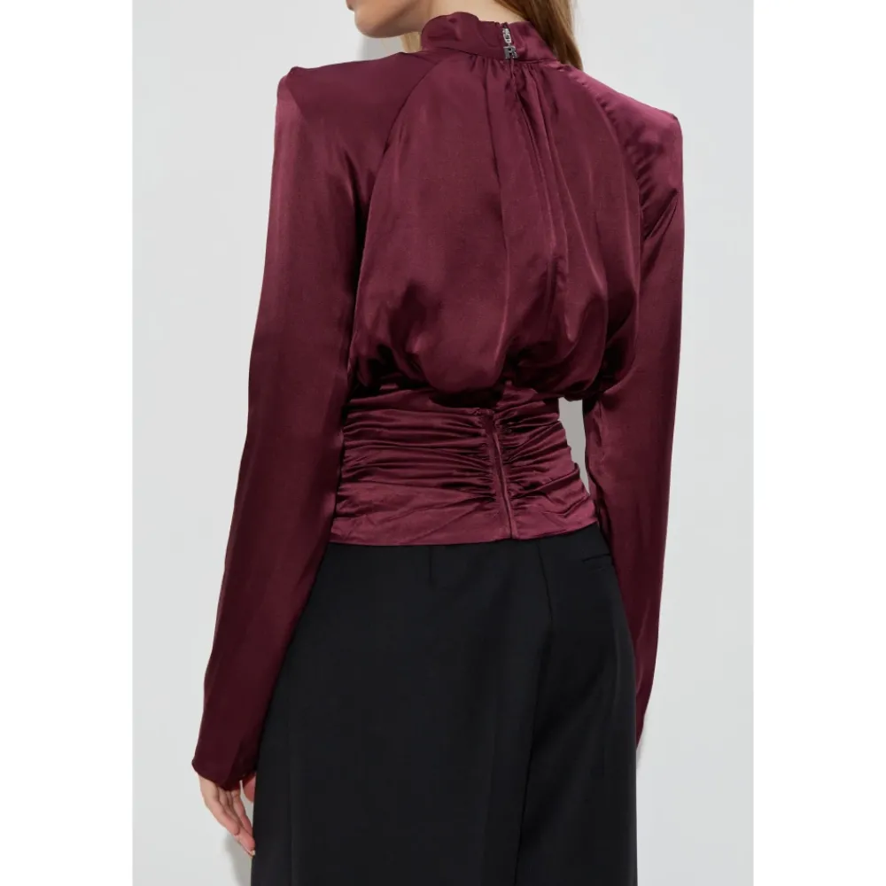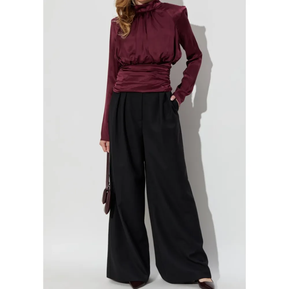 SILK TOP van ROTATE is de essentie van verfijnde eenvoud, geïnspireerd op de traditie van Scandinavische minimalisme en tijdloze elegantie. De subtiele glans van natuurlijk zijde benadrukt het exclusieve karakter van het product, terwijl de getailleerde snit met verfijnde ruches in de taille de silhouet prachtig vormgeeft. De kenmerkende hoge kraag met elegante plooien op de borst accentueert subtiel de halslijn, terwijl lange, toelopende mouwen zorgen voor een algeheel gevoel van lichtheid. De verborgen ritssluiting knipoogt naar strakke, minimalistische lijnen en elimineert onnodige details. De top is vrij van zichtbare logo’s of prints, wat perfect aansluit bij de filosofie van tijdloze, bewuste mode. Het ontwerp is met nauwgezette aandacht voor elk detail vervaardigd, wat veelzijdigheid garandeert, terwijl de nobele stof prachtig valt op het figuur. WAAROM DIT PRODUCT KOPEN? * Elegantie en verfijning dankzij natuurlijke zijde * Getailleerde snit met vormende tailleband die de silhouet accentueert * Universele styling – perfect voor zowel dagelijks gebruik als speciale gelegenheden * Zorgvuldig ontworpen details – ruches, hoge kraag en verborgen ritssluiting * Ondertekend door het prestigieuze merk ROTATE uit Kopenhagen Modelmaten Hoogte: 176 cm Buste: 85 cm Taille: 60 cm Heupen: 89 cm Model draagt maat: 36
