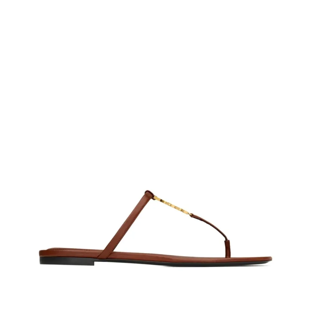 DAMES Saint Laurent Slippers^Leren platte sandalen met YSL-logo