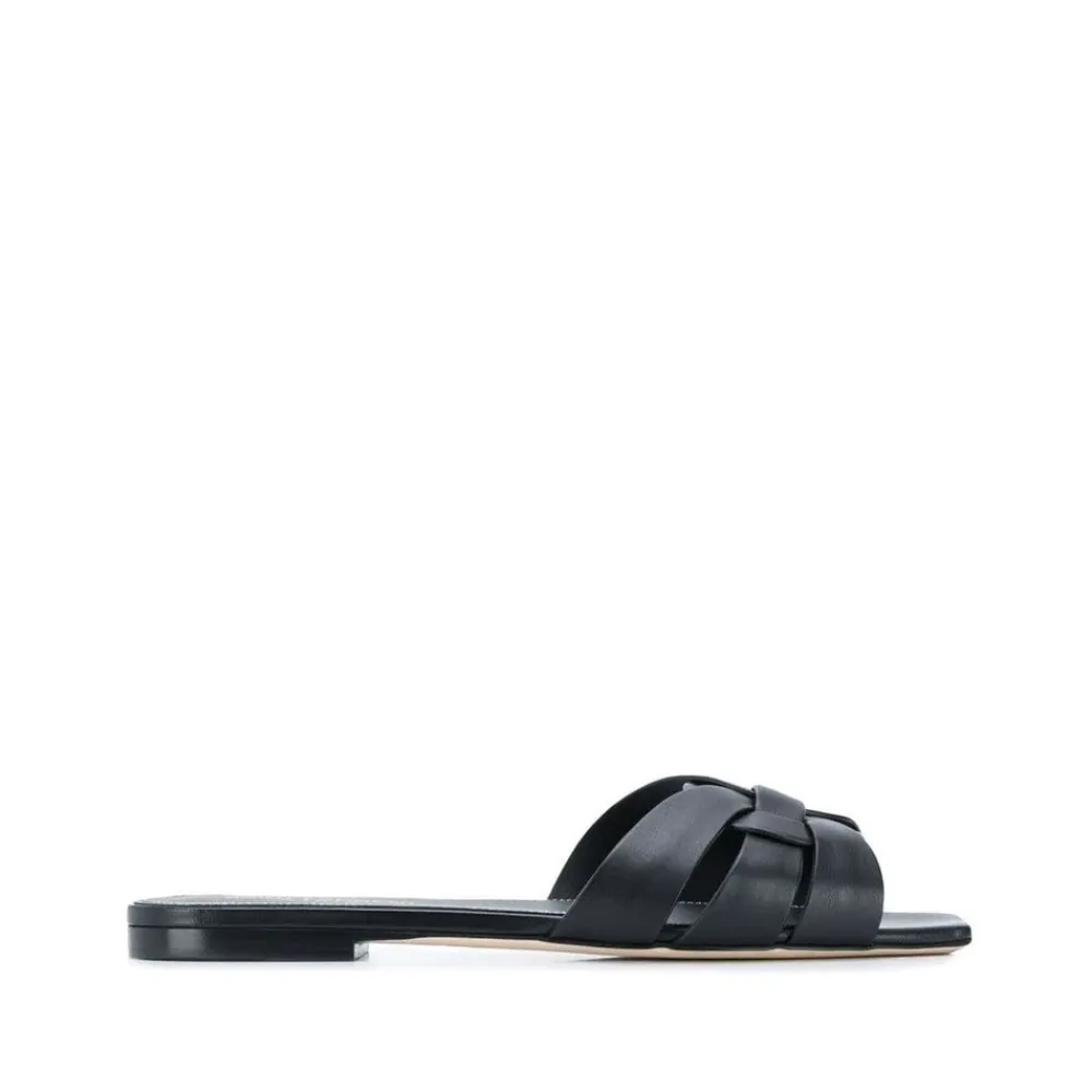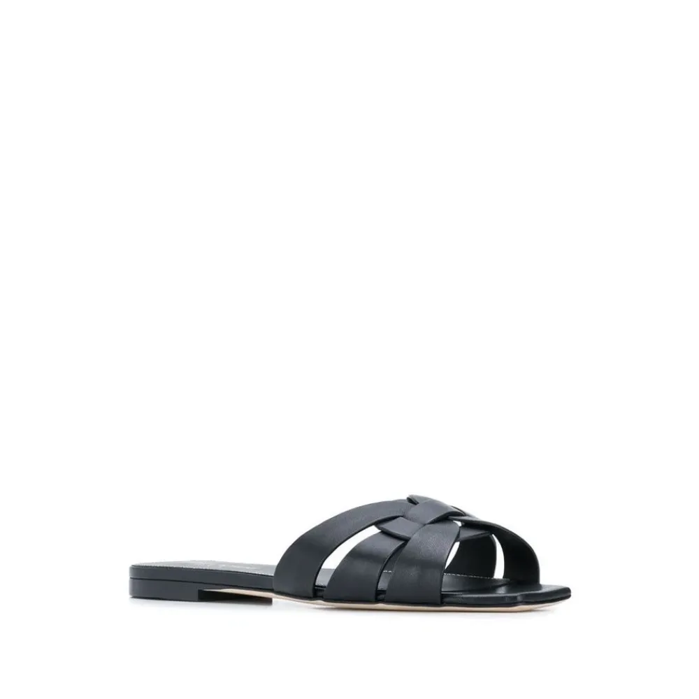 Stap in stijl met deze Tribute Mules van Saint Laurent. Deze instap sandalen hebben een vierkante neus en gevlochten bandjes, perfect voor elke modebewuste vrouw. Met een hak van 0,5 cm zijn deze sliders zowel comfortabel als chic. Gemaakt van hoogwaardig leer, zijn deze mules gemakkelijk schoon te maken met een zachte doek. Verkrijgbaar in standaard maten. Product Style ID: 571952BDA001000.