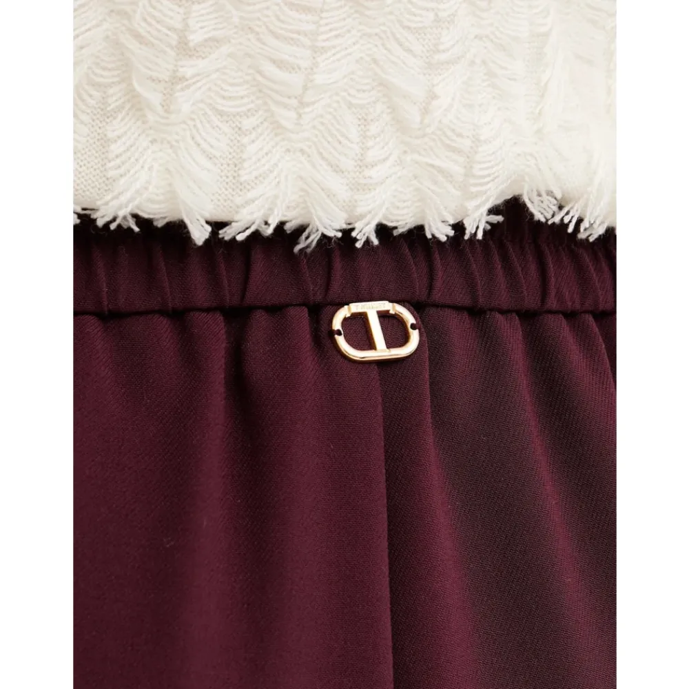 Deze Twinset Women’s Jogger Pants zijn gemaakt van crêpe met een elastische tailleband en trekkoord, met zijzakken en een wijde pasvorm. Perfect voor een casual en trendy look, bieden deze broeken comfort en stijl. Ideaal voor een informele uitje met vrienden. Een must-have voor modebewuste vrouwen die zowel stijl als comfort waarderen. Gratis levering en eenvoudig retourneren. Bestel de jouwe nu! Crêpe broek met elastische tailleband en trekkoord, zijzakken en wijde pasvorm. Modelhoogte: 178 cm. Maat gedragen: S/40. 94% polyester 6% elastaan. Voering: 100% polyester. Materiaal 2: 94% polyester 6% elastaan. Handwas, Niet bleken, Niet in de droger, Strijken op max. 110°C, Voorzichtig chemisch reinigen met perchloorethyleen, Hangend drogen in de schaduw.