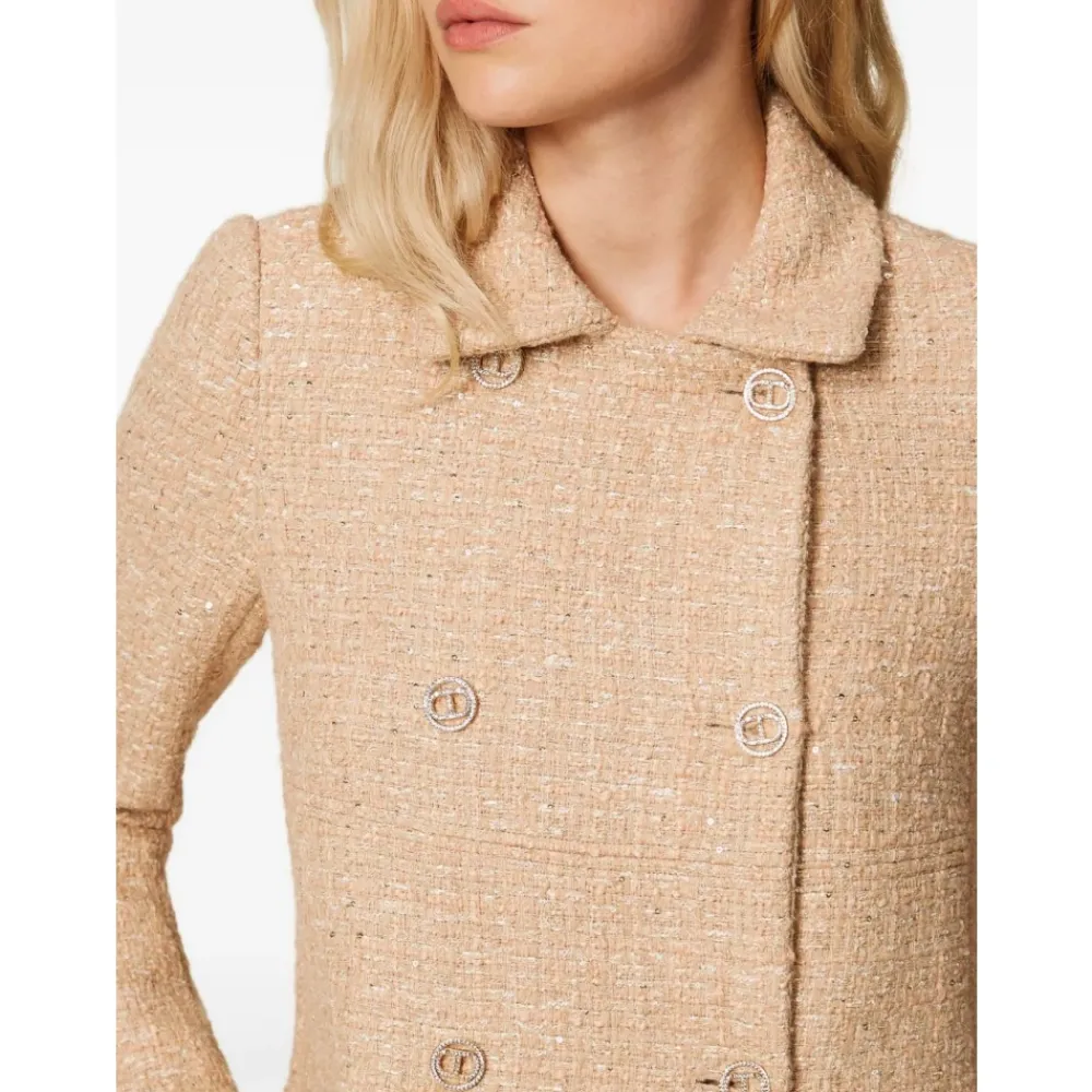 Verhoog je stijl met deze Twinset Giacconi jas in het beige. Perfect voor elke gelegenheid, biedt deze jas een stijlvolle touch en ultiem comfort met zijn zachte stofmix. Ideaal voor laagjes in overgangsweer.