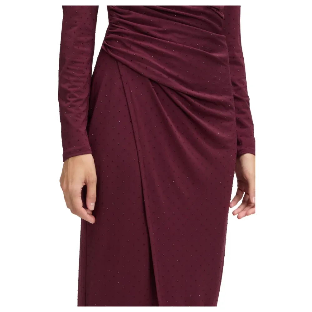 Op zoek naar een nieuw favoriet stuk? Deze elegante avondjurk betovert met sprankelende stof, vrouwelijk wikkelontwerp en figuurvolgende slim fit. De zijwaartse split zorgt voor een stijlvolle uitstraling, terwijl het ontbreken van een sluiting het bijzonder gemakkelijk maakt om aan te trekken. In een nobele effen look – perfect voor speciale gelegenheden.