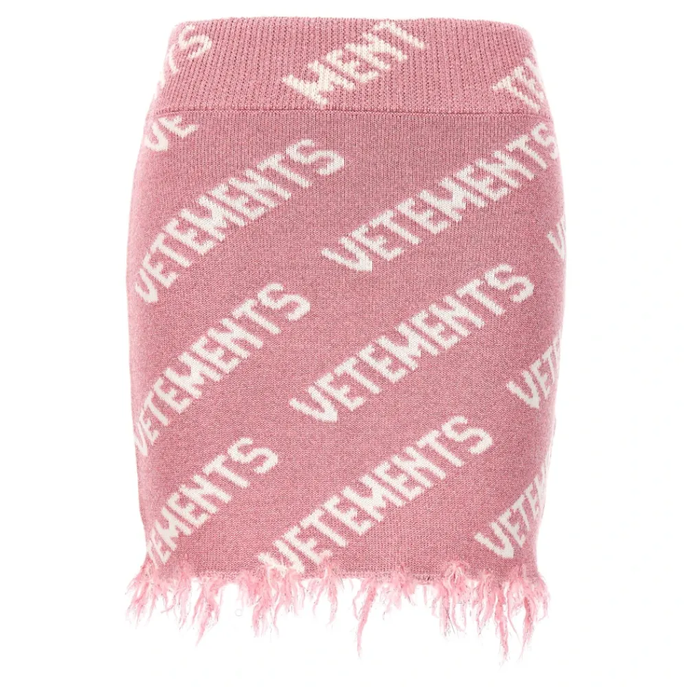 De Vetements Iconic Lurex Monogram Rok is een korte jacquard rok die opvalt door zijn glinsterende lurex afwerking en all-over logo patroon. Het combineert een comfortabele elastische tailleband met een gerafelde zoom voor een eigentijdse, gemakkelijk te dragen look. Belangrijkste kenmerken: Roze | Lurex viscosemix | Elastische tailleband | All-over jacquard logo patroon | Gerafelde zoom | Korte lengte | Afmetingen & pasvorm: Normale pasvorm | Valt normaal qua maat | Samenstelling & verzorging: 50% viscose | 32% wol | 15% polyester | 3% polyamide