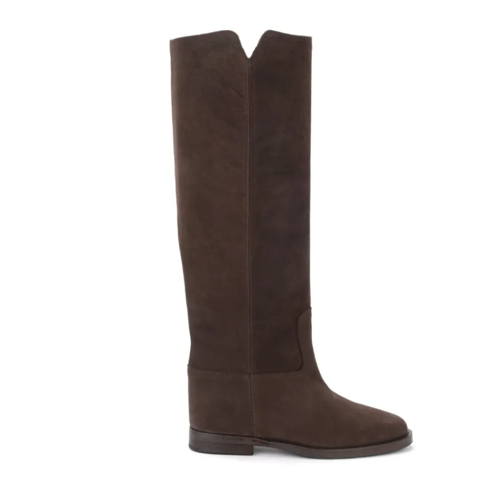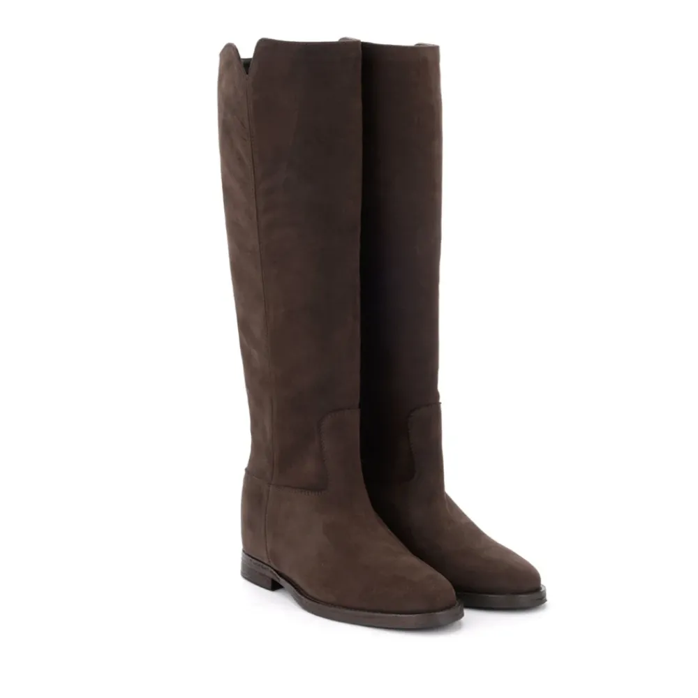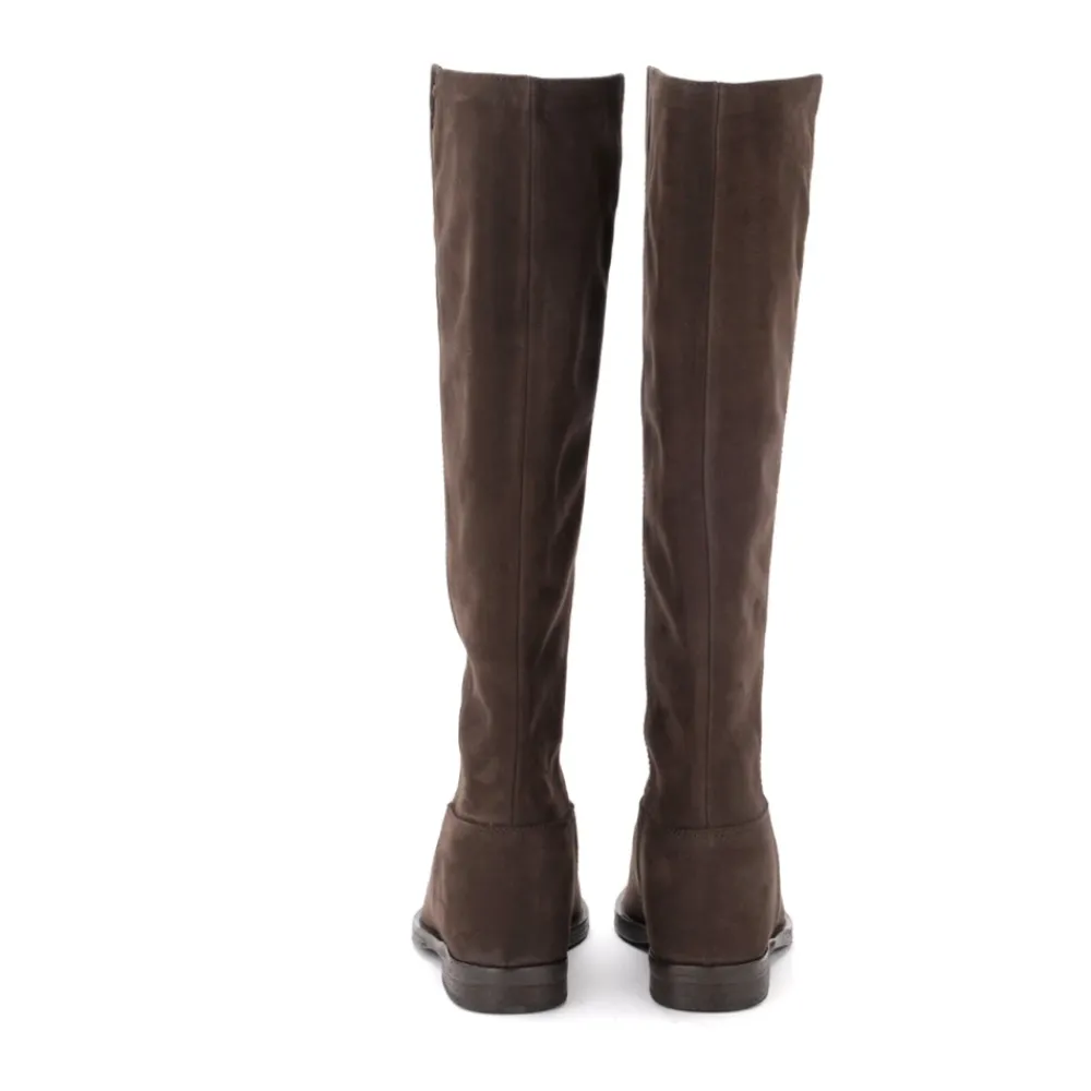 Upgrade je stijl met deze hoge laarzen van Via Roma 15 voor vrouwen. Gemaakt van donkerbruin suède met een binnenzip op de schacht. Met een 5 cm hoge sleehak, leren en antislip rubberen zool. Gemaakt in Italië.