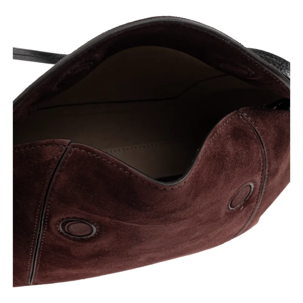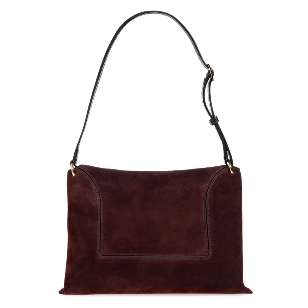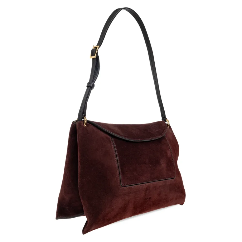 De betoverende PENELOPE schoudertas van WANDLER is een opvallend bewijs van ambachtelijk vakmanschap en een passie voor esthetiek. De slanke, rechthoekige silhouet met een afgeronde klep verwijst naar tijdloze klassiekers, terwijl het ook het eigentijdse karakter van de accessoire benadrukt. De tas valt op door zijn fluweelzachte suède in een diepe Bordeaux kleur, subtiel gecontrasteerd met de rand. De algehele levendige elegantie wordt verrijkt door een hoogwaardige gladleren band met verstelbare lengte, bevestigd met goudkleurige hardware. Een zorgvuldig verborgen magnetische sluiting zorgt voor gebruiksgemak en de veiligheid van uw spullen. Aan de voorkant is een delicaat, ingedrukt ontwerperslogo zichtbaar – een symbool van kwaliteit en verfijning. Elke tas is met de hand vervaardigd in Italië van voortreffelijk kalfsleer, waardoor elk stuk werkelijk uniek is. WAAROM IS DIT PRODUCT HET WAARD OM TE KOPEN? * Verfijnd minimalisme en eersteklas materialen * Met de hand gemaakt in gerenommeerde Italiaanse ateliers * Verstelbare band voor maximaal draagcomfort * Subtiele details die de unieke karakter benadrukken * Handtekening van het prestigieuze Wandler-merk Hoogte: 17,5 cm Breedte: 25 cm Modelmaten Hoogte: 176 cm Buste: 85 cm Taille: 60 cm Heupen: 89 cm