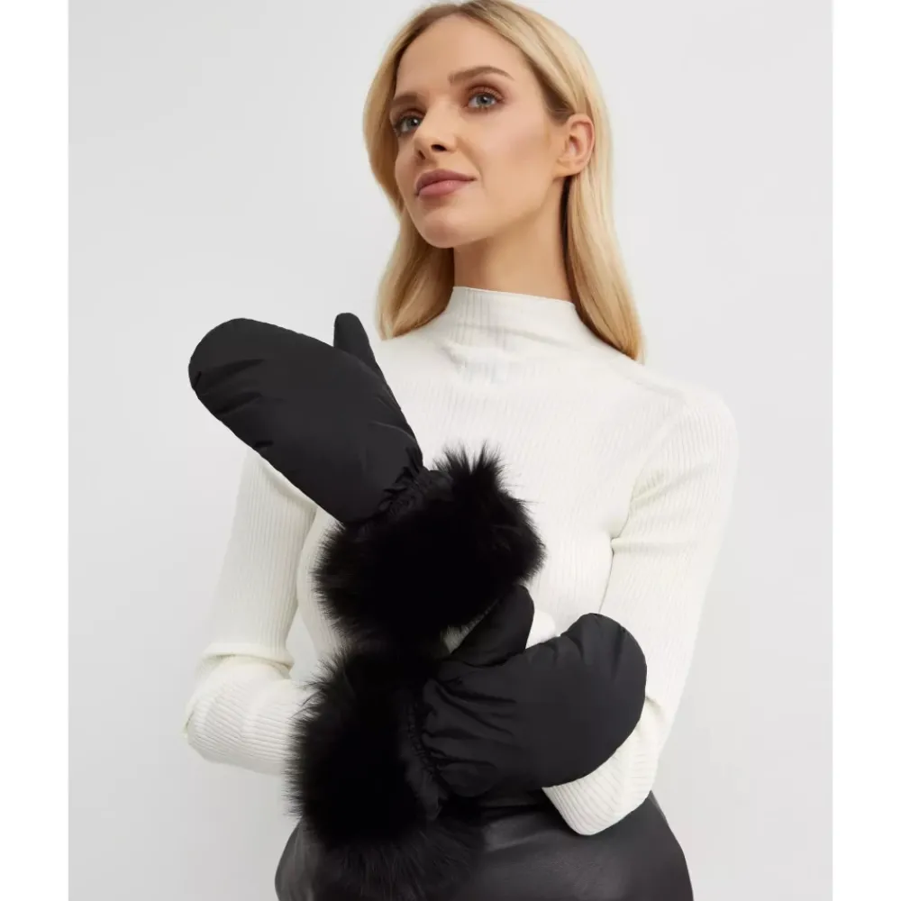 DAMES Yves Salomon Technische stof en wanten van vossenbont