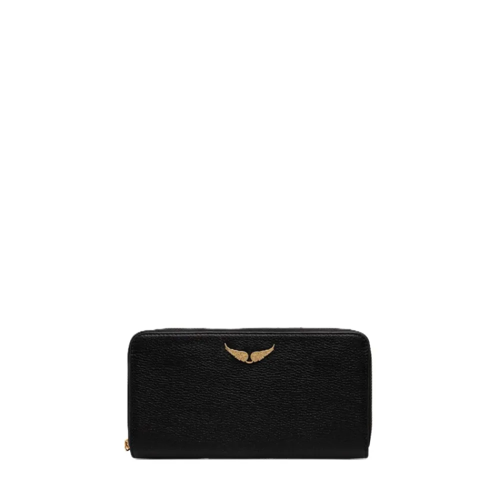 De Zadig & Voltaire Compagnon portemonnee is een continental portemonnee van generfd leer, ontworpen voor dagelijkse organisatie. Het combineert een verfijnde leertextuur met een kenmerkende vleugelbedel voor een gepolijst, veelzijdig accessoire. Belangrijkste kenmerken: Zwart | Goud | Leer | Ritssluiting rondom | Meerdere kaartvakken (12) | Muntvak met rits | Interieur vakken voor bankbiljetten | Generfde leertextuur | Vleugelbedel detail | Rechthoekig continentaal silhouet | Logo accent | Samenstelling & onderhoud: 100% leer