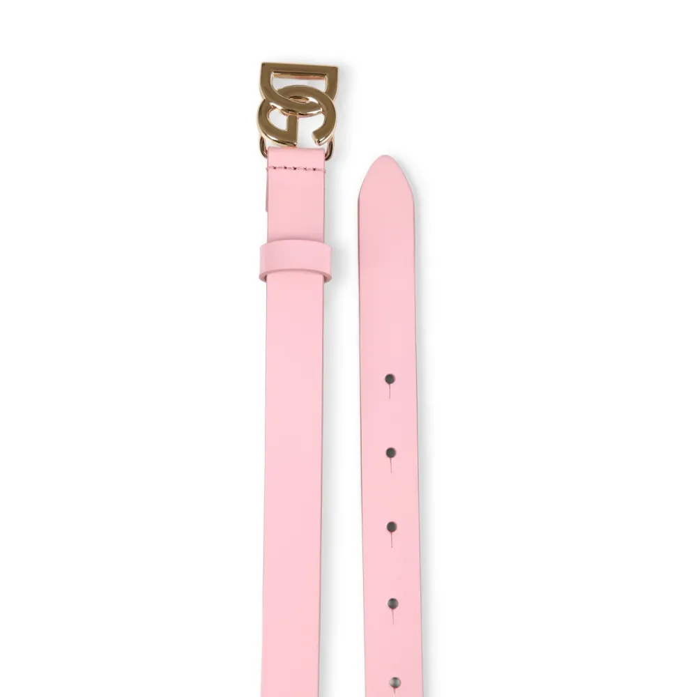 Maak de outfit van je kleine meisje compleet met deze roze lakleren riem van het luxe merk Dolce & Gabbana Kids. Gemaakt in Italië, met een stijlvolle metalen DG-gesp. Vervaardigd uit 100% leer.