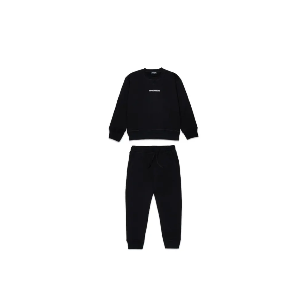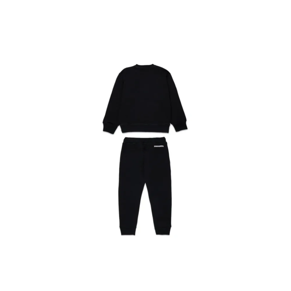 Upgrade de stijl van je zoontje met deze zwarte Dsquared2 trainingspak met contrasterend logo. Verkrijgbaar in verschillende maten voor kinderen van alle leeftijden.