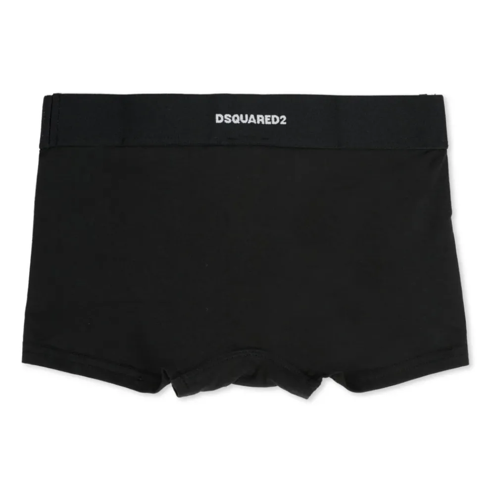 Upgrade de essentiële kledingkast van je kleintje met deze zwarte Dsquared2 boxershorts. Gemaakt van een comfortabele katoenmix, ze hebben een elastische taille en het iconische logo op de voorkant. Gemaakt van 95% katoen en 5% elastaan. Machinewas op 30°C.