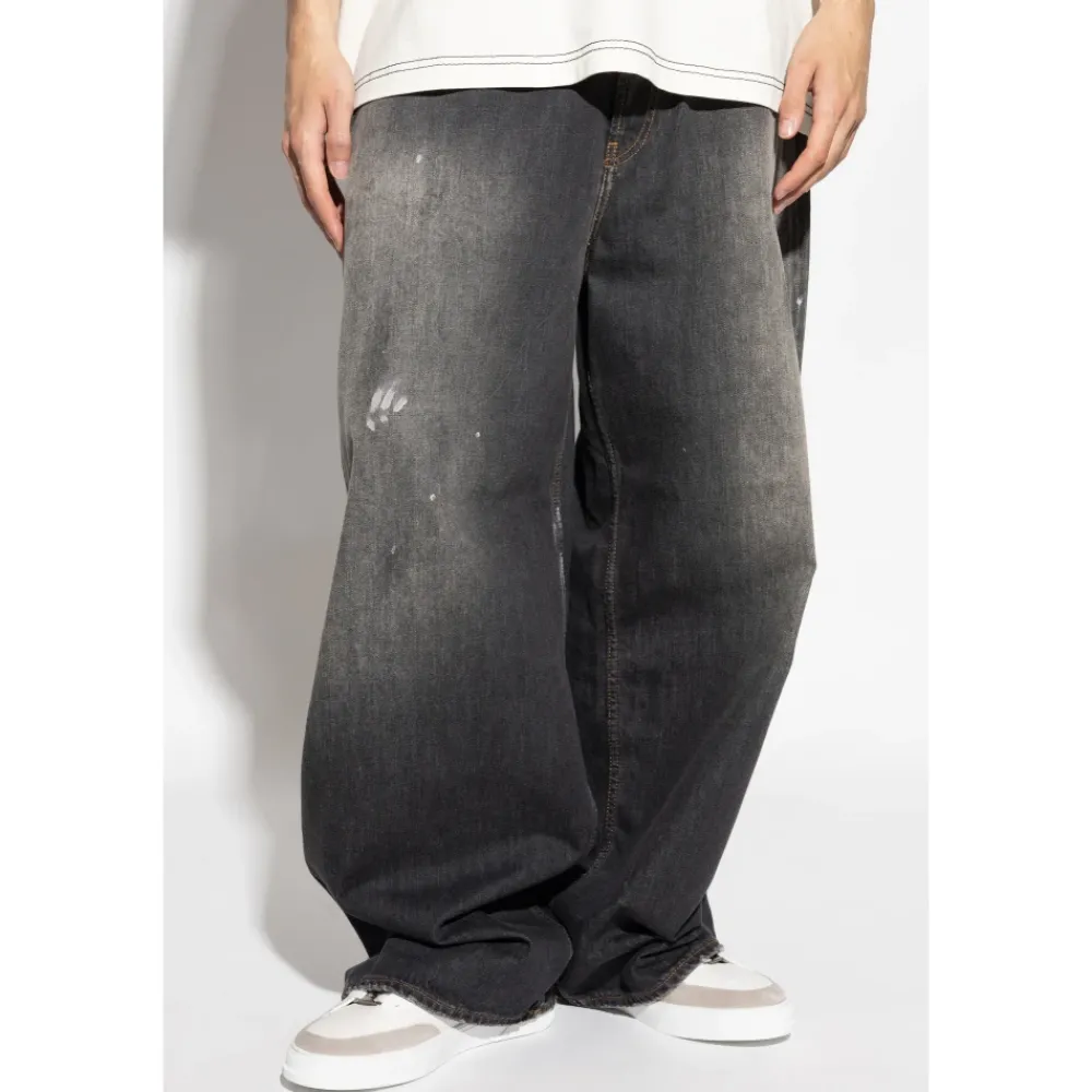 De Acne Studios 2023 Jeans herinterpreteren klassiek denim met een oversized, opvallend silhouet. De broek valt op door zijn zeer wijde, baggy bootcut pijp en ingedragen oppervlakdetails. Belangrijkste kenmerken: Grijs | Katoenen denim | Stugge, niet-rekbare denim | Dikke, stevige constructie | Vijfzakkenmodel | Knoopgulp | Zeer wijde baggy bootcut pijp | Verwassen effecten met onregelmatige slijtage | Artistieke verfachtige vlekken | Contrasterende oranje stiksels | Zichtbare vintage/distressed afwerking | Afmetingen & pasvorm: Lengte: 193 cm | Borst: 95 cm | Taille: 82 cm | Heupen: 93 cm | Model draagt maat: L | Losse pasvorm | Zeer wijde, baggy bootcut pijp | Samenstelling & verzorging: 100% Katoen