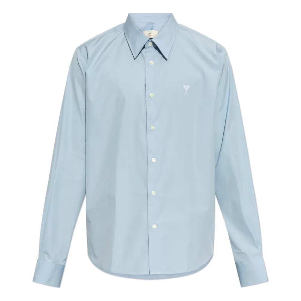 Ontdek het LOGO SHIRT van AMI ALEXANDRE MATTIUSSI, een veelzijdig kledingstuk perfect voor zowel casual als formele gelegenheden. De lichtblauwe tint voegt een vleugje elegantie toe, terwijl de hoogwaardige katoenen stof zorgt voor comfort. Belangrijkste kenmerken: Lichtblauw | Blauw | Katoen | Lange mouwen | Subtiele knopen | Geborduurd logo met hart en `A` op de borst | Afmetingen en pasvorm: Klassieke pasvorm | Samenstelling en onderhoud: 100% Katoen | Koud wassen in de machine, drogen op lage temperatuur