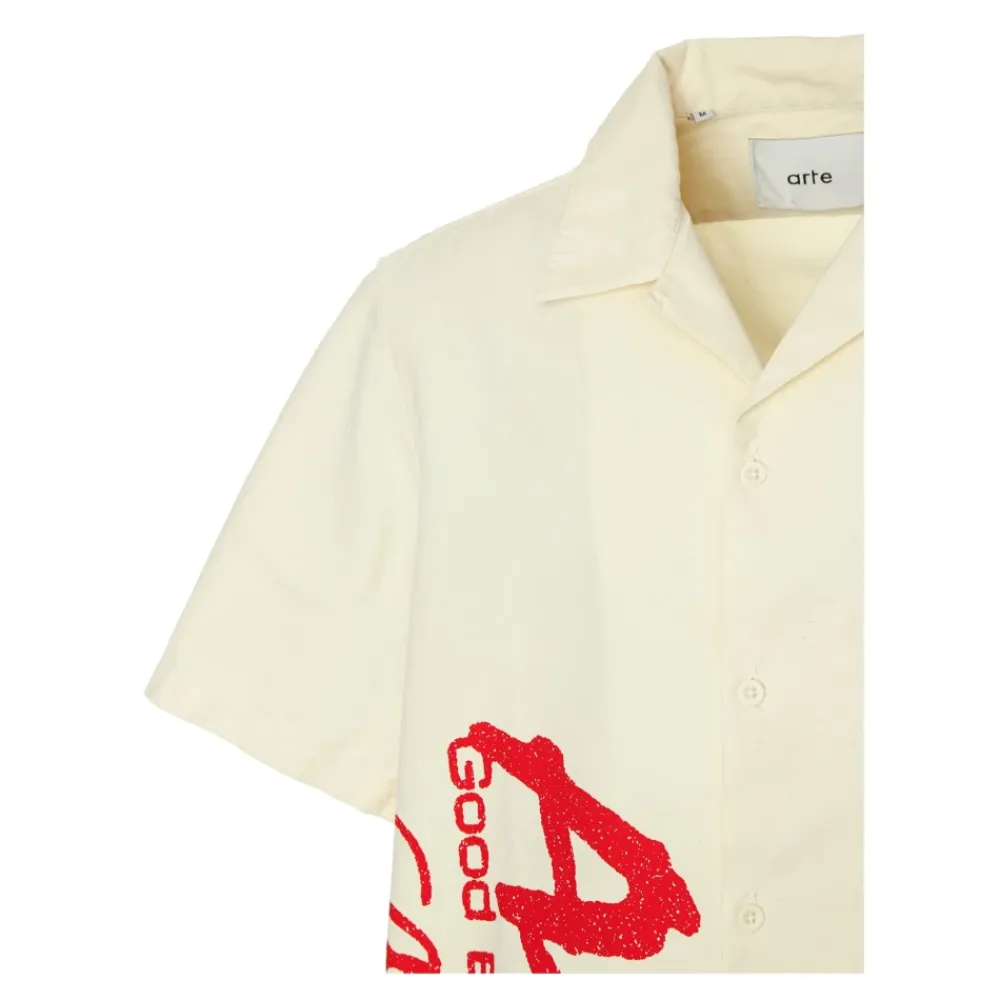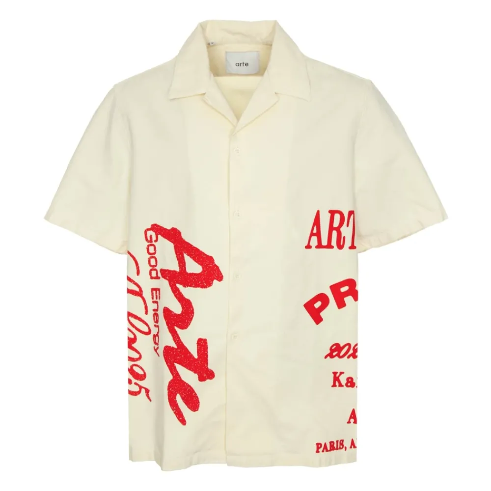 Kort overhemd met volledige knoopsluiting en rode printgrafiek van Arte Antwerp, voor mannen.