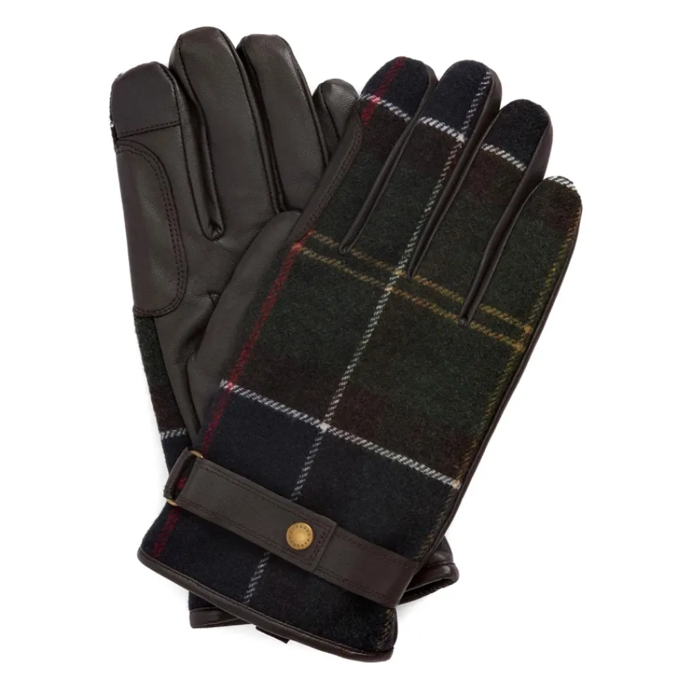 Blijf warm en stijlvol met deze waterdichte Barbour-handschoenen voor heren, met een combinatie van rijk leer en wolstof in het klassieke tartandesign. De drukknoopsluiting bij de manchet zorgt voor een verstelbare pasvorm.