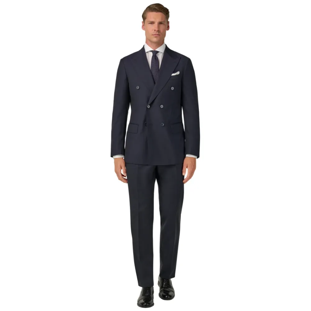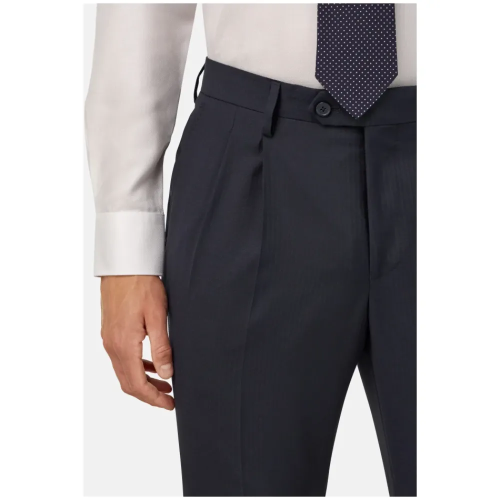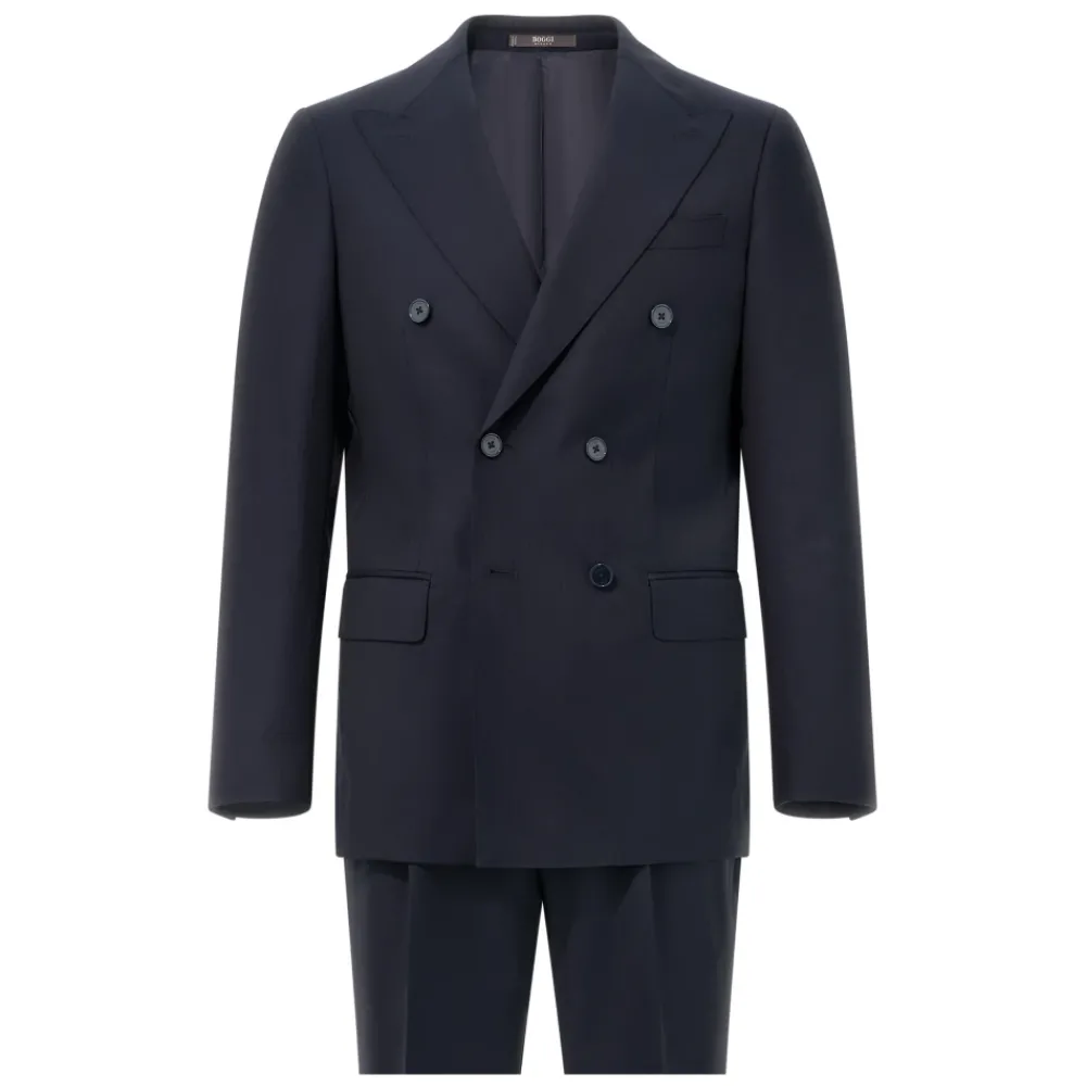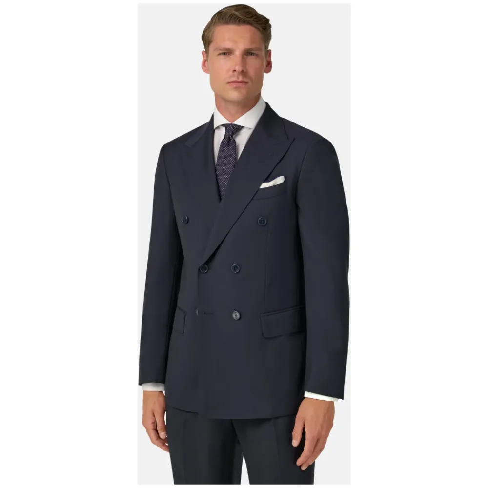Heren Boggi Milano Kostuums^Micro Herringbone Wol Dubbel Breasted Pak Stijl