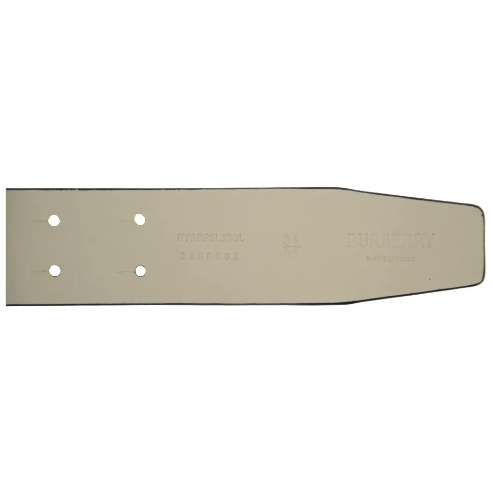 Upgrade je stijl met deze leren herenriem van Burberry. Gemaakt in Italië, deze omkeerbare riem heeft een snap-fit gesp met een goudkleurig metalen detail. Verstelbaar voor de perfecte pasvorm. Verkrijgbaar in verschillende lengtes. Stof: Leer.