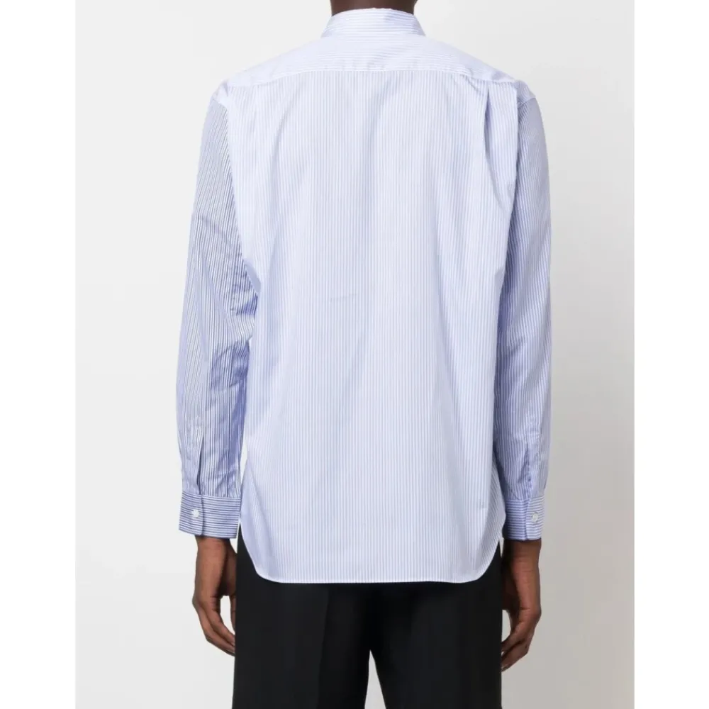 Comme des Garçons presenteert het Multi Stripe Shirt — een gestreept poplin overhemd met patchwork dat klassieke overhemden vernieuwt met gemengde blauwe tonale strepen. Ontworpen voor smart-casual kleding, het werkt goed in laagjes of op zichzelf gedragen voor een verfijnde, eigentijdse look. Belangrijkste kenmerken: Blauw | Katoen | Knoopsluiting | Borstzak met patch | Manchetten met knopen | Gestreept patchworkpatroon | Klassieke kraag | Lange mouwen | Afgeronde zoom | Afmetingen & pasvorm: Oksel tot oksel (XS / S / M / L / XL): 54 cm / 55,5 cm / 57 cm / 59 cm / 61 cm | Schouderbreedte (XS / S / M / L / XL): 44,5 cm / 47 cm / 48 cm / 49 cm / 50,5 cm | Mouwlengte (XS / S / M / L / XL): 58 cm / 59,5 cm / 61,5 cm / 63 cm / 64 cm | Ruglengte (XS / S / M / L / XL): 73 cm / 76 cm / 79 cm / 81 cm / 84 cm | Nek (XS / S / M / L / XL): 39 cm / 40 cm / 41 cm / 42 cm / 43 cm | Manchetbreedte (XS / S / M / L / XL): 21,5 cm / 22,5 cm / 23,5 cm / 24,5 cm / 25,5 cm | Klassieke pasvorm | Samenstelling & onderhoud: 100% Katoen