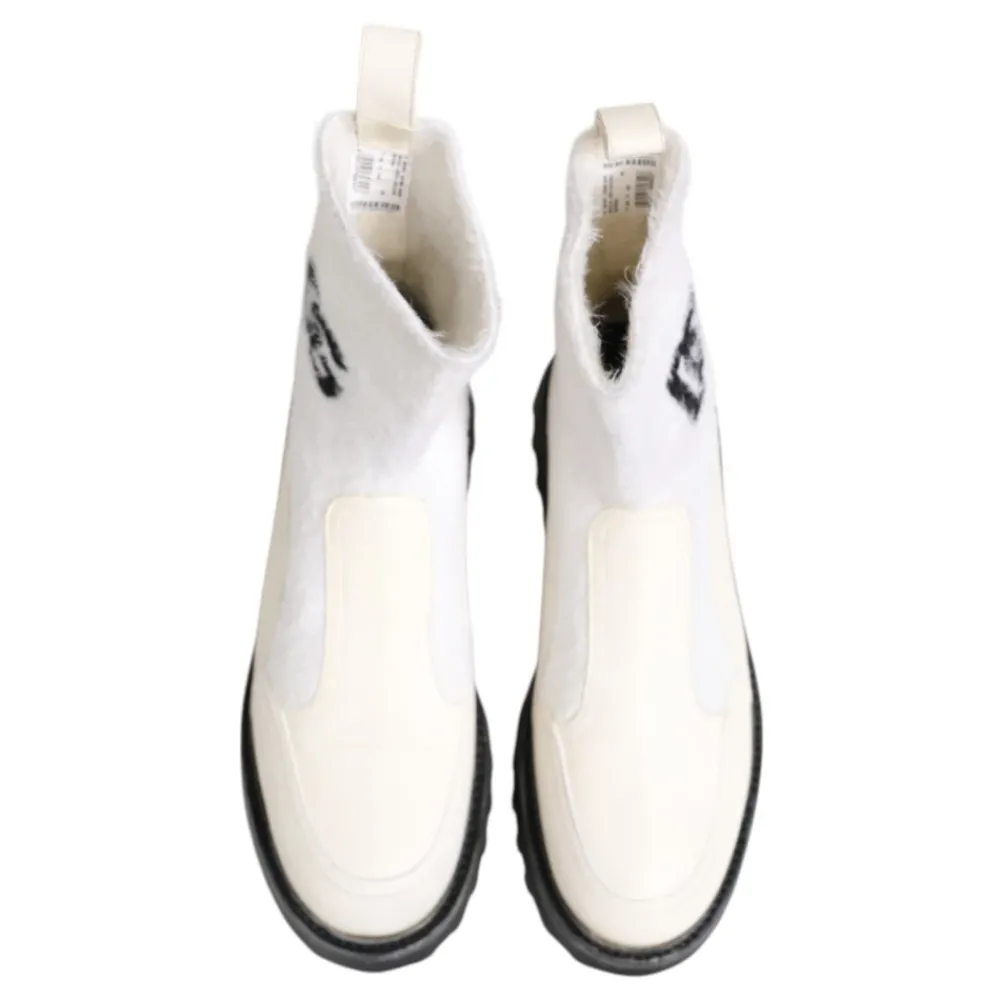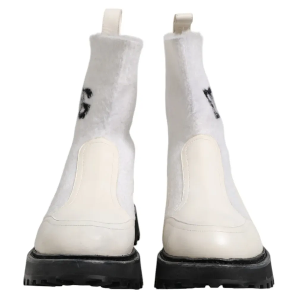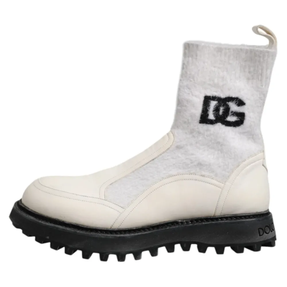 Dolce & Gabbana Mid Calf Laarzen combineren een silhouet tot halverwege de kuit met opvallende DG-logo details voor een statement look. Vervaardigd uit stof en leer met een rubberen buitenzool, geschikt voor verfijnde alledaagse kleding. Belangrijkste kenmerken: Wit | Beige | Stof, Leer | Rubberen buitenzool | DG-logo details | Silhouet tot halverwege de kuit | Gemaakt in Italië | Hoogwaardig vakmanschap | Samenstelling & onderhoud: Stof | Leer | Rubber