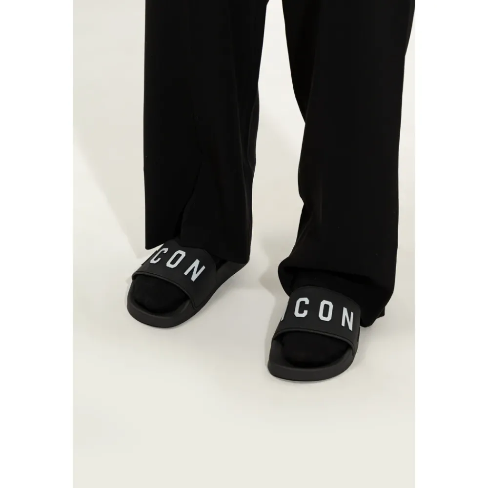 Verrijk je casual look met de zwarte Be Icon slides, met een opvallend wit logo voor een gedurfde statement. Belangrijkste kenmerken: Black | Rubber | 3D logo lettering | Icon logo on front | Afmetingen en pasvorm: Regular fit | Samenstelling en onderhoud: 100% Polyurethaan | 100% EVA | Schoonmaken met een vochtige doek.