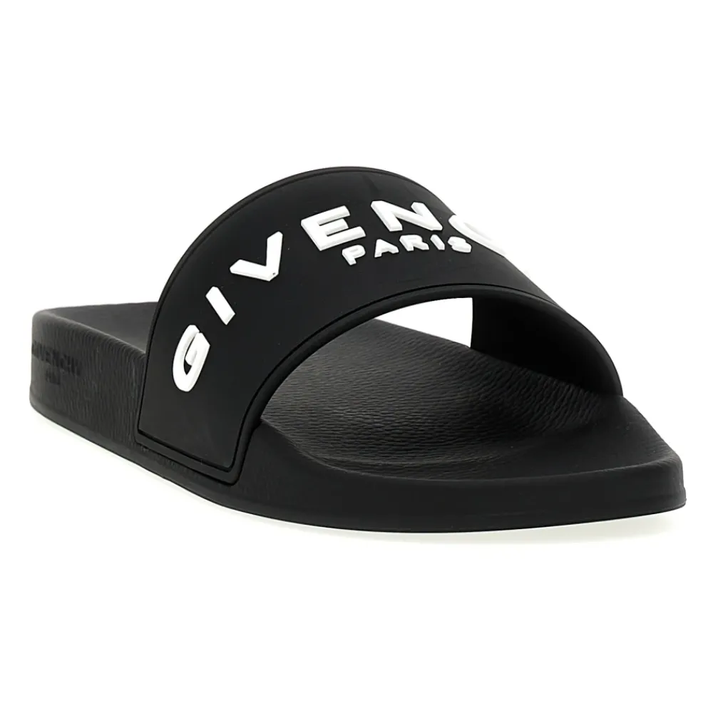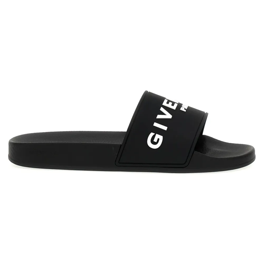 De Givenchy Plage Rubber Slide van Givenchy biedt een minimalistisch slip-on ontwerp met een contrasterend logo, ideaal voor bij het zwembad en dagelijks gebruik. Belangrijkste kenmerken: Zwart | Wit | Polyurethaan | Slip-on constructie | Voorgevormd voetbed | Contrasterend logo op de band | Enkele brede band | Verhoogde/reliëf branding | Samenstelling & onderhoud: 100% polyurethaan | Afnemen met een vochtige doek. Vermijd langdurige blootstelling aan hitte, licht of chemische producten. Bewaar op een koele, droge plaats.