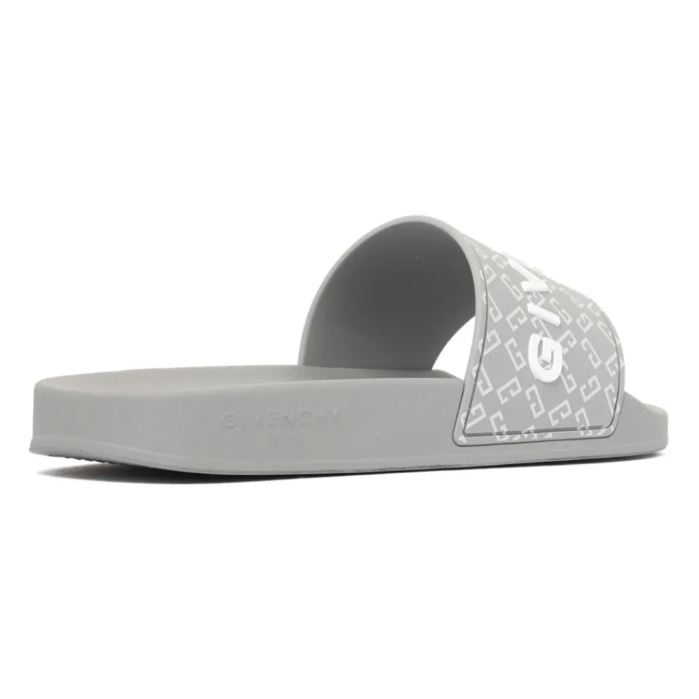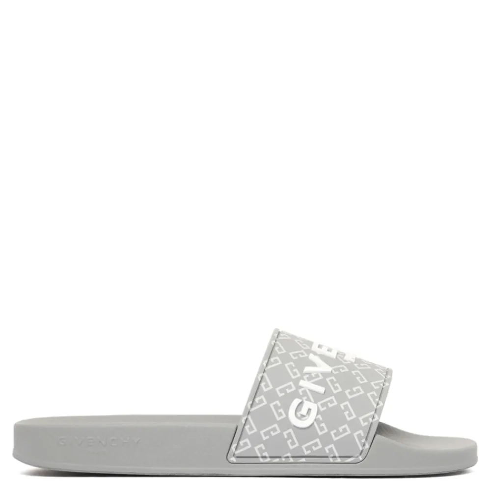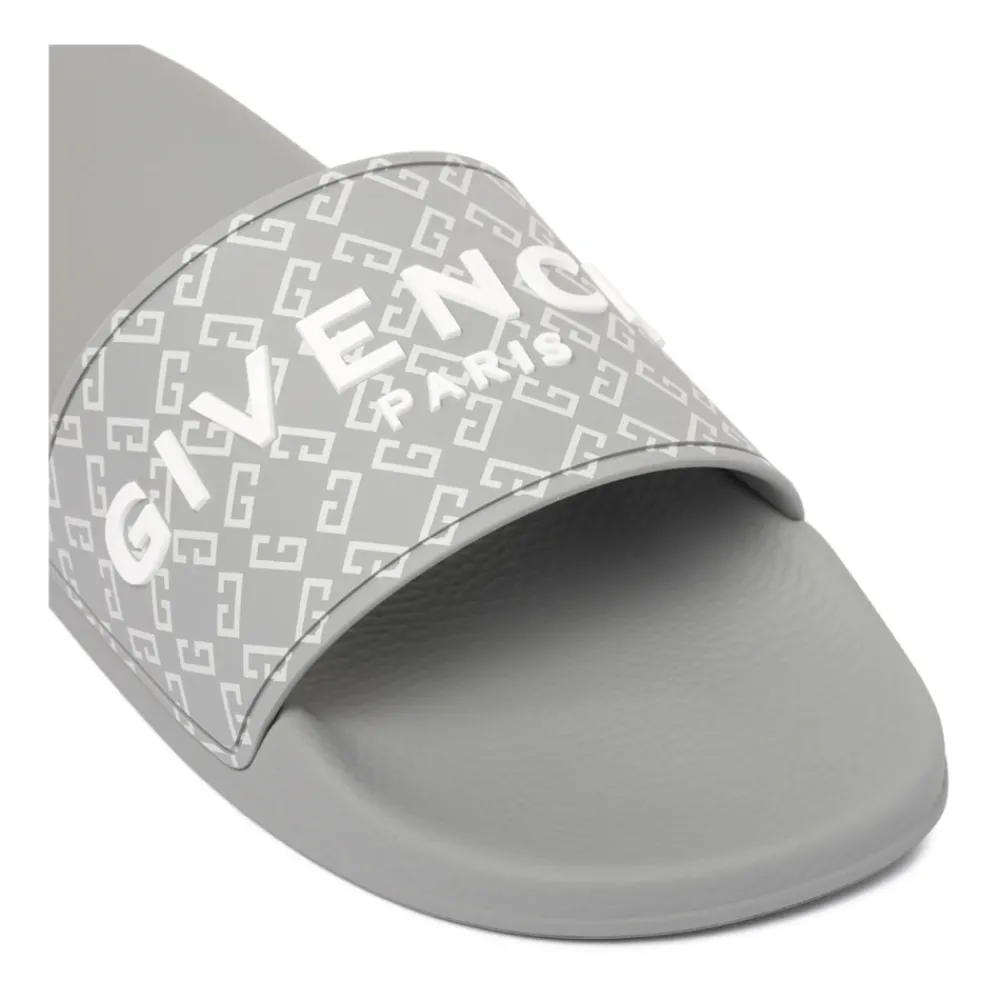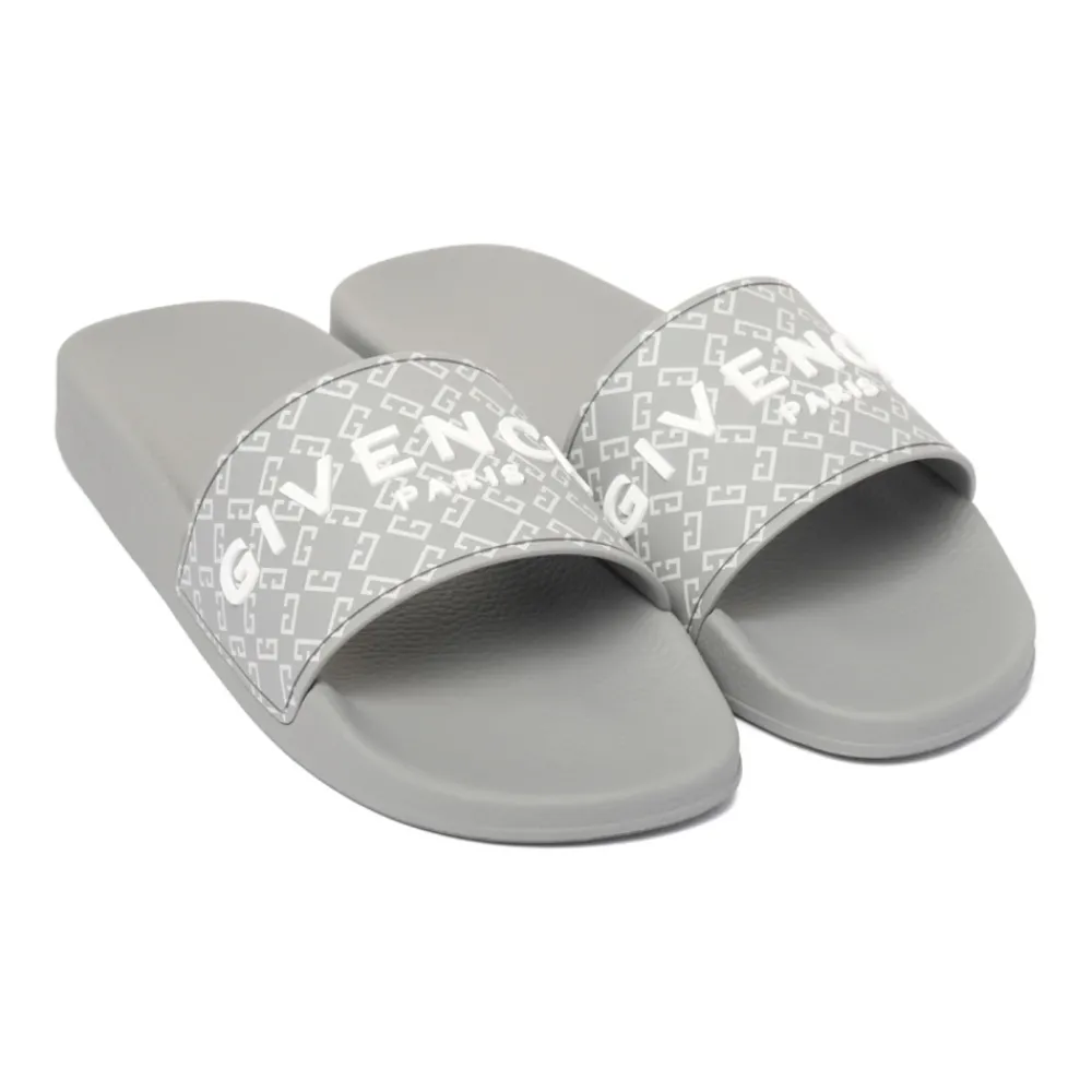 Upgrade je casual look met deze Givenchy Grey Slides. Gemaakt van grijs polyurethaan met een matte afwerking, deze instappers hebben een reliëflogo aan de voorkant, monogrammotief, open ronde neus, gevormd voetbed en platte rubberen zool.