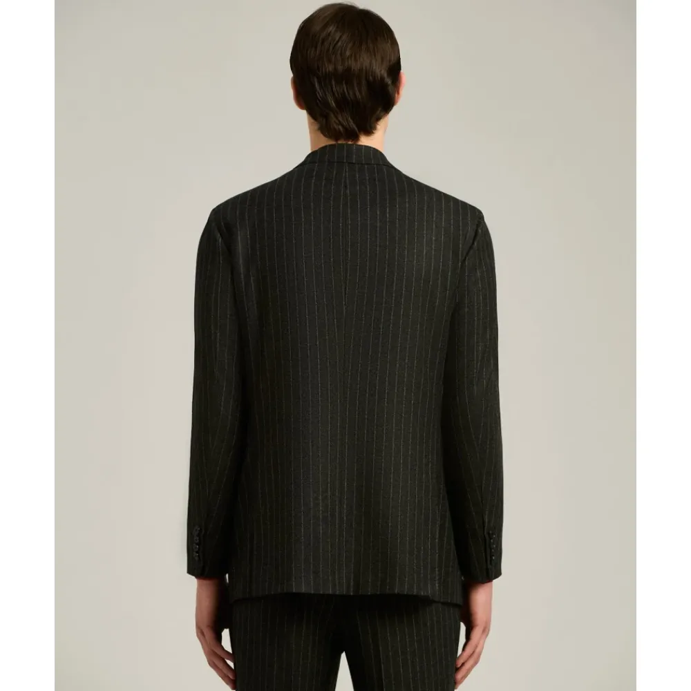 Maak een statement van elegantie met dit Kiton double-breasted pak. Met de hand vervaardigd in Napels met een mix van wol en kasjmier, combineert het tijdloos krijtstreep patroon met moderne stijl. Elk detail weerspiegelt 25 uur handenarbeid voor een onberispelijke silhouet.
