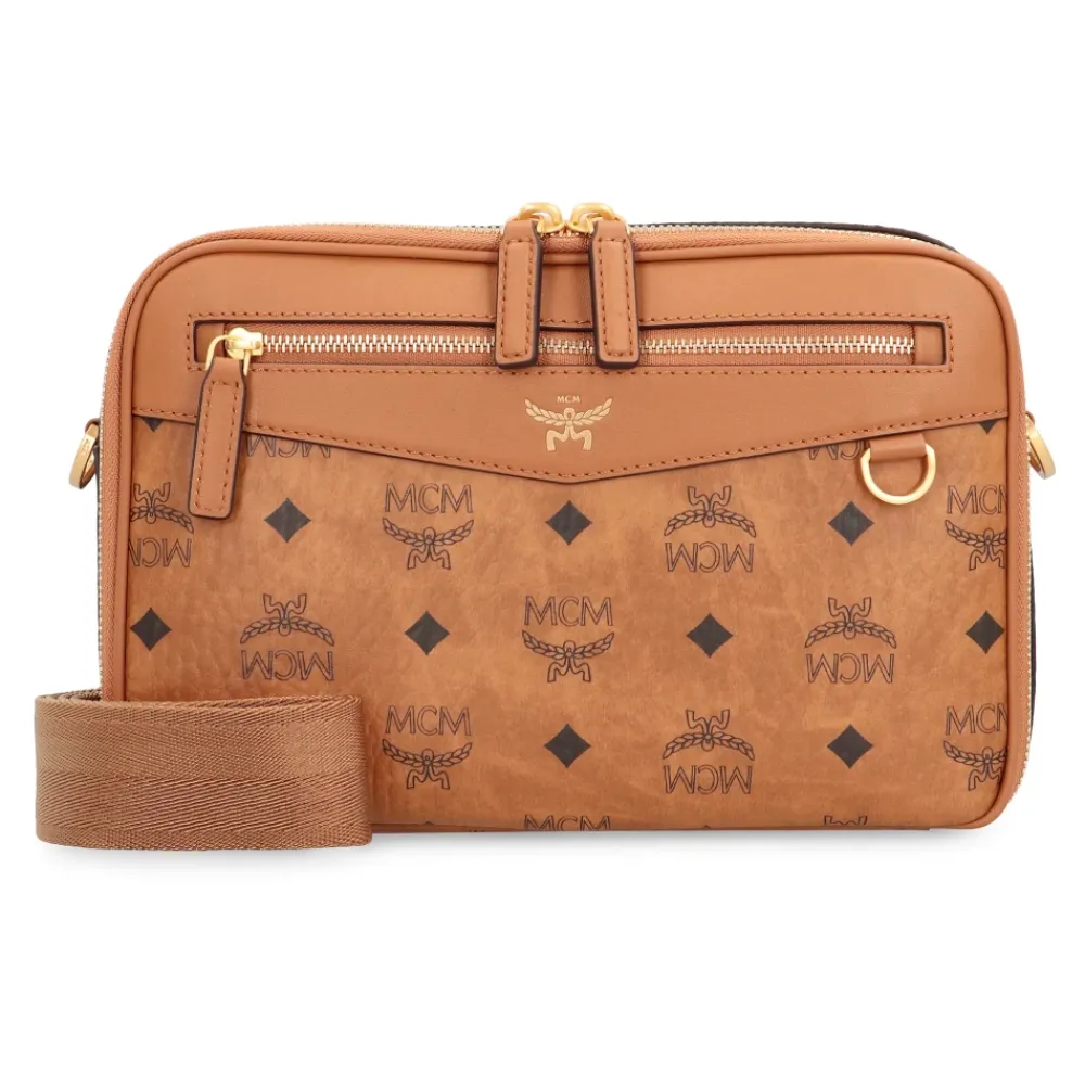 De MCM Diamond Camera Bag is een compacte Visetos crossbody, ontworpen om dagelijkse benodigdheden mee te nemen. Het combineert een geometrisch diamantleren motief met goudkleurige hardware voor een gestructureerd, gemakkelijk te dragen silhouet. Belangrijkste kenmerken: Bruin | Visetos gecoat canvas | gecoat canvas | Katoenen twill voering | Rits aan de bovenkant | Een intern plat vak | Ritsvak aan de voorkant | Verstelbare en afneembare schouderriem | Afneembare riem | Visetos monogrampatroon | Geometrisch diamantleren motief | Natuurlijk lederen afwerking | Camera bag silhouet | Goudkleurige metalen hardware | Afmetingen & pasvorm: Breedte: 24 cm | Hoogte: 17 cm | Diepte: 7 cm | Riem: 120 cm | Samenstelling & verzorging: 63% Polyurethaan | 20% Polyester | 17% Katoen | Afwerking: 100% Rundleer