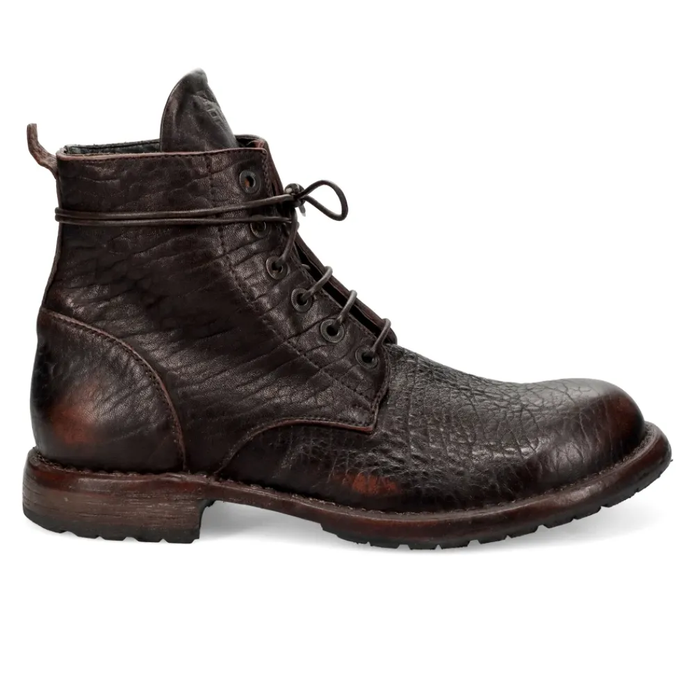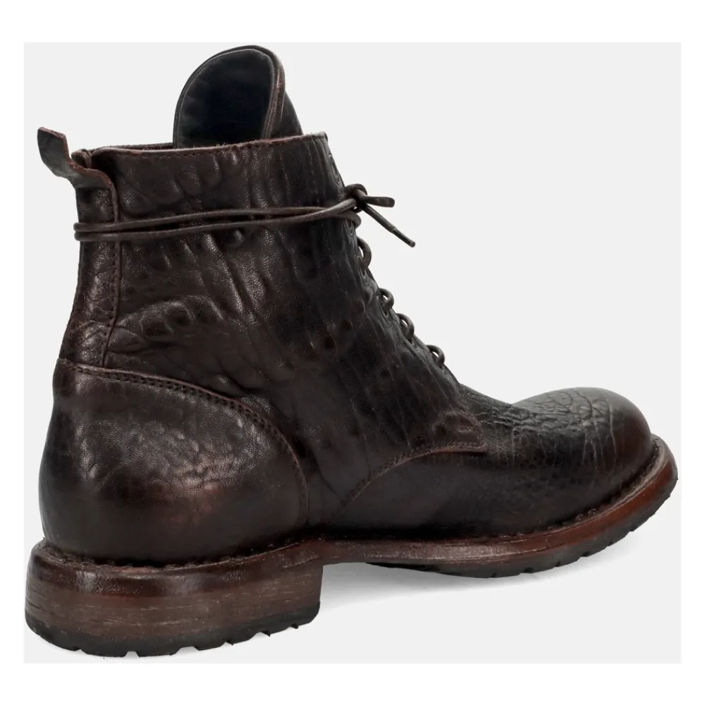 De MOMA enkellaars met veters is een handgemaakte Italiaanse enkellaars van leer met een heritage-effect, ontworpen voor comfortabel dagelijks gebruik van ’s ochtends tot ’s avonds. Belangrijkste kenmerken: Bruin | Leer | Comfortabel om de hele dag te dragen | Antislip rubberen zool | Vetersluiting | Stevige leren zool met rubberen grip | Vintage ‘heritage-effect’ lederen afwerking | Handgemaakt in Italië | “Ideal” constructie | Afmetingen en pasvorm: Brede pasvorm – we raden aan om één maat kleiner te kiezen dan je normale maat. | Samenstelling en onderhoud: Leer | Rubber