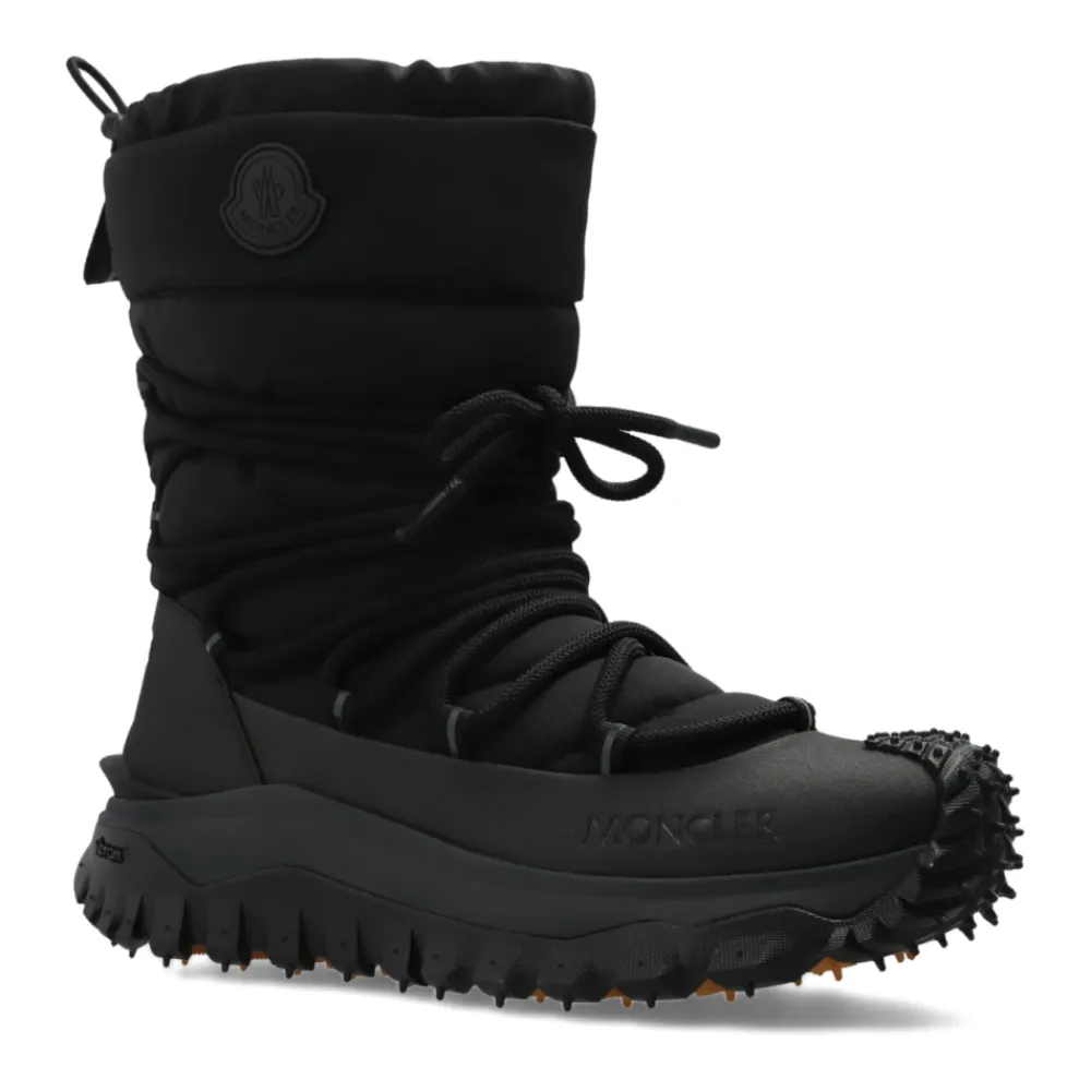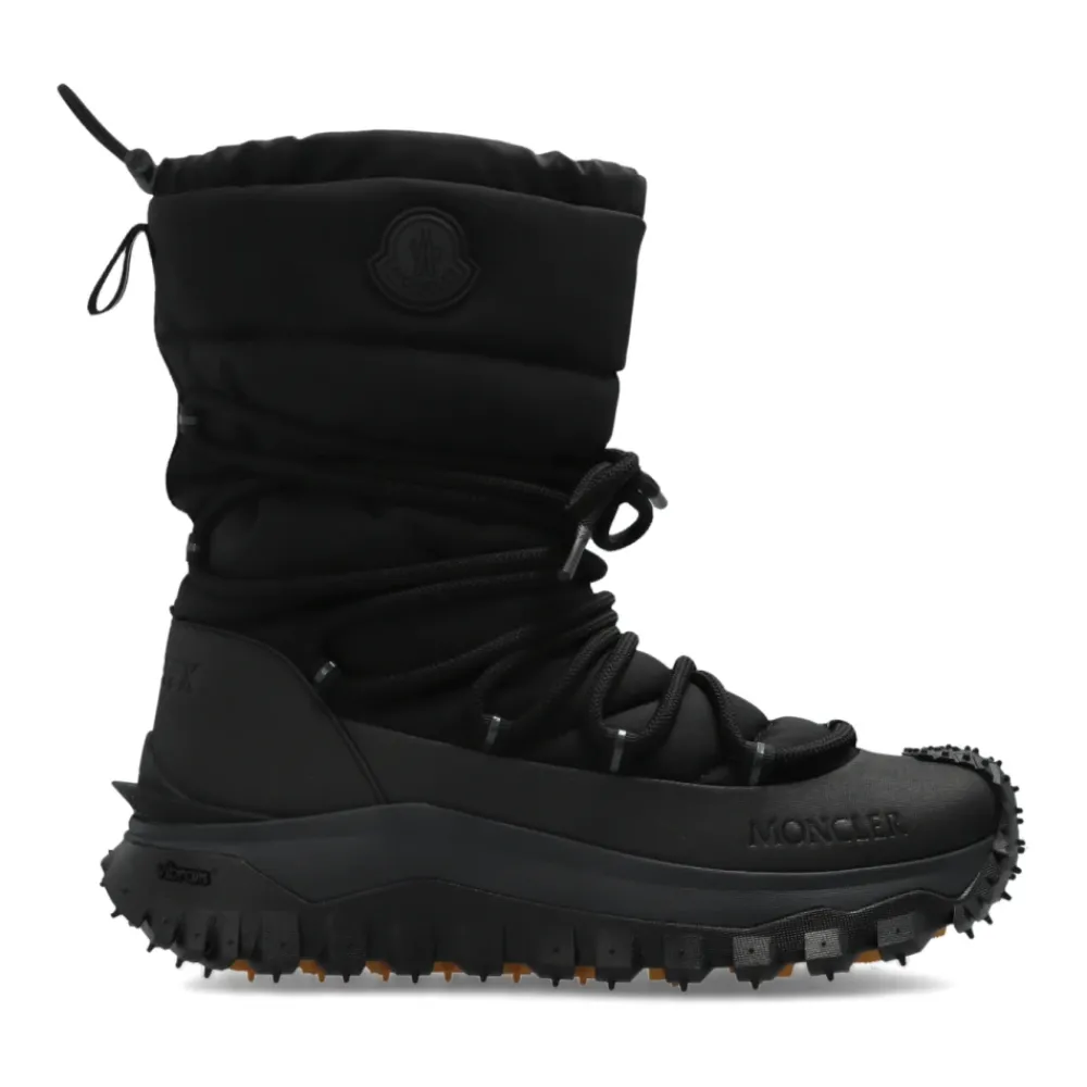De Moncler Trailgrip GTX veterschoenen leveren betrouwbare winterprestaties met een waterdicht GORE-TEX membraan en een Vibram MEGAGRIP-zool voor een stevige grip op sneeuw en ijs. Belangrijkste kenmerken: Zwart | Nylon | Waterdicht GORE-TEX membraan | Ademende constructie | Vibram MEGAGRIP-buitenzool met hoge tractie | Antislip profiel | Vetersluiting | EVA-middenzool voor lichtheid | OrthoLite®-binnenzolen | TPU-spoiler | Inzetstuk van koolstofvezel tussen middenzool en profiel | Hoog / kuit-hoog silhouet | Verhoogd rubberen Moncler-logo | Gevormde rubberen zool met profiel | Matte afwerking | Afmetingen en pasvorm: Schacht hoogte: 20 cm | Zool hoogte: 4.5 cm | Samenstelling & onderhoud: Bovenkant: 87% Polyamide (Nylon), 13% Elastane (Spandex) | Voering: 100% Polyester | Zool: 100% Elastodieen | Niet wassen. Niet bleken. Niet in de droogtrommel. Niet strijken. Niet chemisch reinigen. Volg de onderhoudsinstructies van Moncler voor opslag en behandeling.