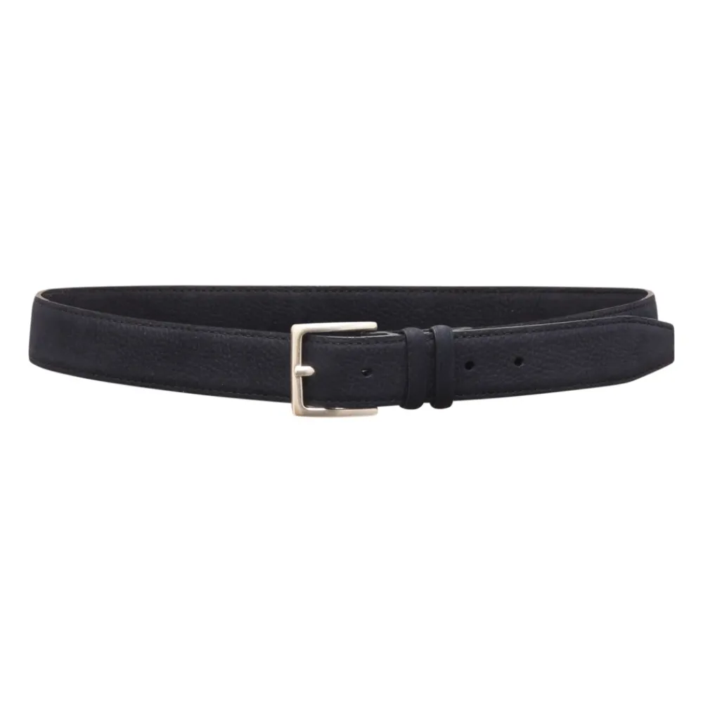 De Orciani Nobuckle leren riem combineert een minimalistisch, gespvrij silhouet met zacht nubuckleer. Hij is ontworpen om een verfijnde, onopvallende afwerking te geven aan zowel elegante als casual outfits. Belangrijkste kenmerken: Donkerblauw | Kalfsleer | Interne verstelbare sluiting | Verborgen sluiting voor een strakke look | Minimaal ontwerp zonder gesp | Fluweelzachte nubucktextuur | Breedte: 3,5 cm | Afmetingen & pasvorm: Breedte: 3,5 cm | Verstelbare pasvorm | Samenstelling & onderhoud: 100% kalfsleer | Beschermen tegen direct licht, hitte en regen. Indien nat, direct drogen met een zachte doek. Reinigen met een zachte, droge doek.