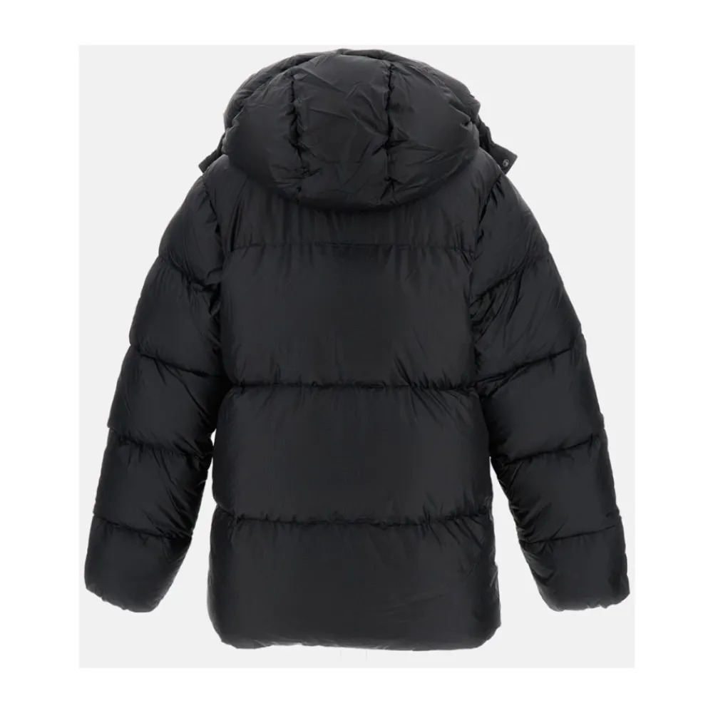 De Pyrenex gewatteerde donsjas combineert een nylon buitenlaag met een isolatie van veren en dons voor betrouwbare warmte in koude omstandigheden. Het ontwerp is gericht op praktische eigenschappen: verstelbare capuchon, veilige zakken en een verstelbare zoom, voor dagelijks gebruik. Belangrijkste kenmerken: Zwart | Nylon | Isolerende vulling van dons en veren | Ritssluiting | Verstelbare capuchon met trekkoord | Twee zijzakken met rits | Interne zak met rits | Elastische manchetten | Verstelbare zoom met intern trekkoord | Gewatteerde constructie | Capuchon met trekkoord | Rechte zoom | Logo-applicatie op de mouw | Samenstelling & onderhoud: Buitenlaag: Nylon (100%) | Vulling: Eendendons 90% / Eendenveren 10% | Machinewas op 30°C. Drogen in de droogtrommel op lage temperatuur met droogballen; opschudden om de loft te herstellen. Niet bleken. Niet chemisch reinigen.