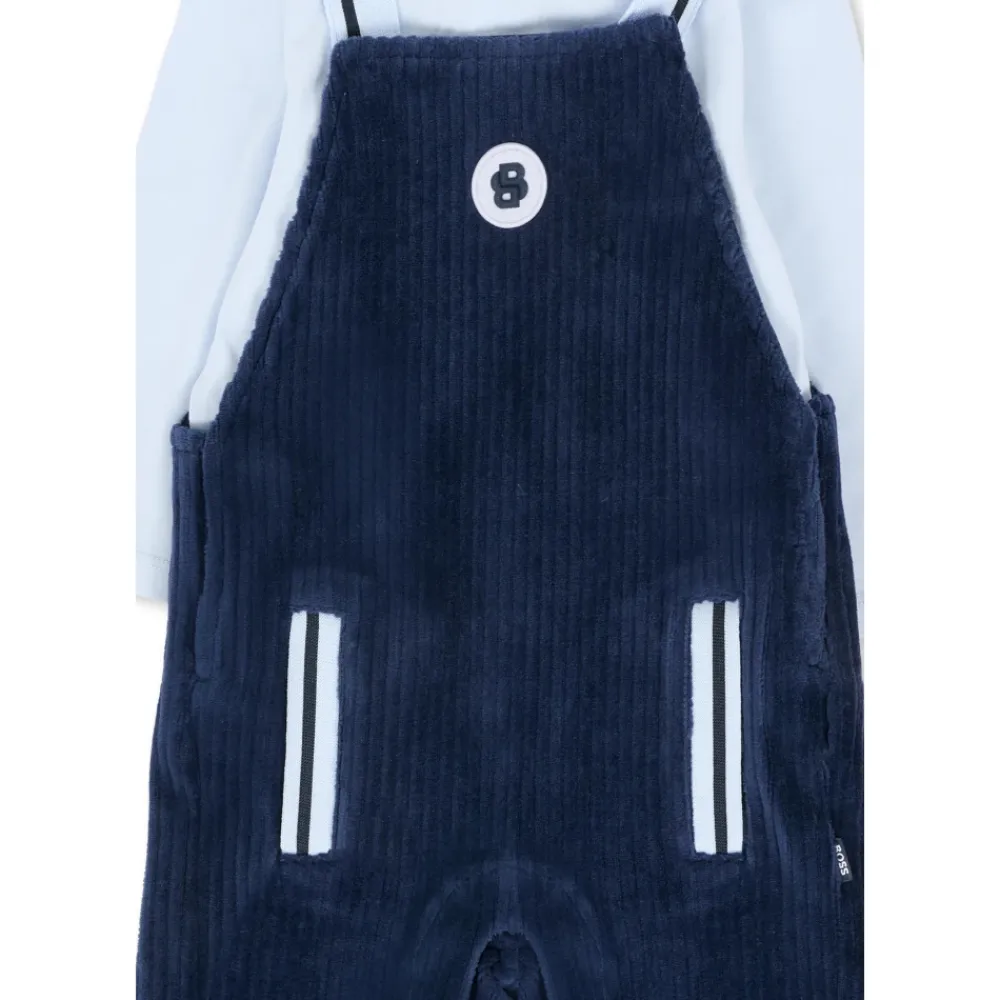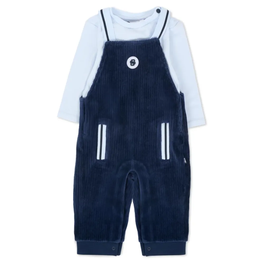Kleed je kleintje in stijl met deze Hugo blauwe tuinbroek set. De geribbelde chenille tuinbroek heeft verstelbare lichtblauwe bandjes, zijzakken en een rubberen logopatch. Gecombineerd met een lichtblauwe longsleeve T-shirt met een logoprint, is deze set zowel comfortabel als modieus. Gemaakt van 70% katoen, 28% polyester, 2% elastaan. Machinewas op 30°C.