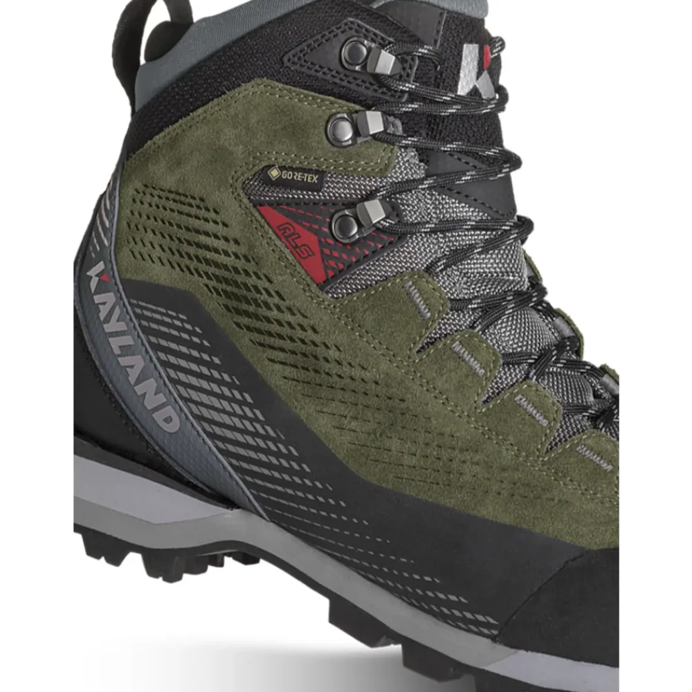 De Kayland Grand Tour GTX combineert lichtgewicht bescherming met veel grip voor moderne wandelingen. Hij combineert een Gore-Tex Extended Comfort-membraan met een Vibram Tork-buitenzool om te presteren op gemengd en technisch terrein. Belangrijkste kenmerken: Groen | Bruin groen | Suèdeleer, microvezel | Waterdicht Gore-Tex Extended Comfort-membraan | Ademende constructie | Vibram Tork-buitenzool met hoge tractie | Lichtgewicht constructie | Ankle Lock System voor stabiele enkelondersteuning | Rubberen neus en rand voor geïntegreerde bescherming | Anatomische vetersluiting voor een veilige pasvorm | Lycra kraag voor drukloos comfort | Hoog uitgesneden trekkingschoen | Suède en microvezel bovenwerk | Rubberen rand en neusdetail | Technisch buitenzoolprofiel | Samenstelling & onderhoud: Suèdeleer | Microvezel | Rubber | Gore-Tex Extended Comfort-membraan | Vibram Tork rubberen buitenzool