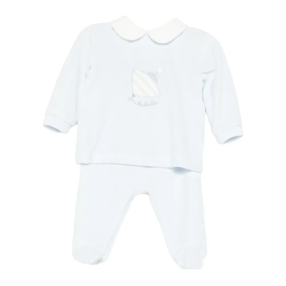 Kleed je kleintje in stijl met deze set van twee LALALU geborduurde-applicatie babypakjes in het blauw. Met ronde hals en knoopsluiting, gemaakt van 100% stof samenstelling.