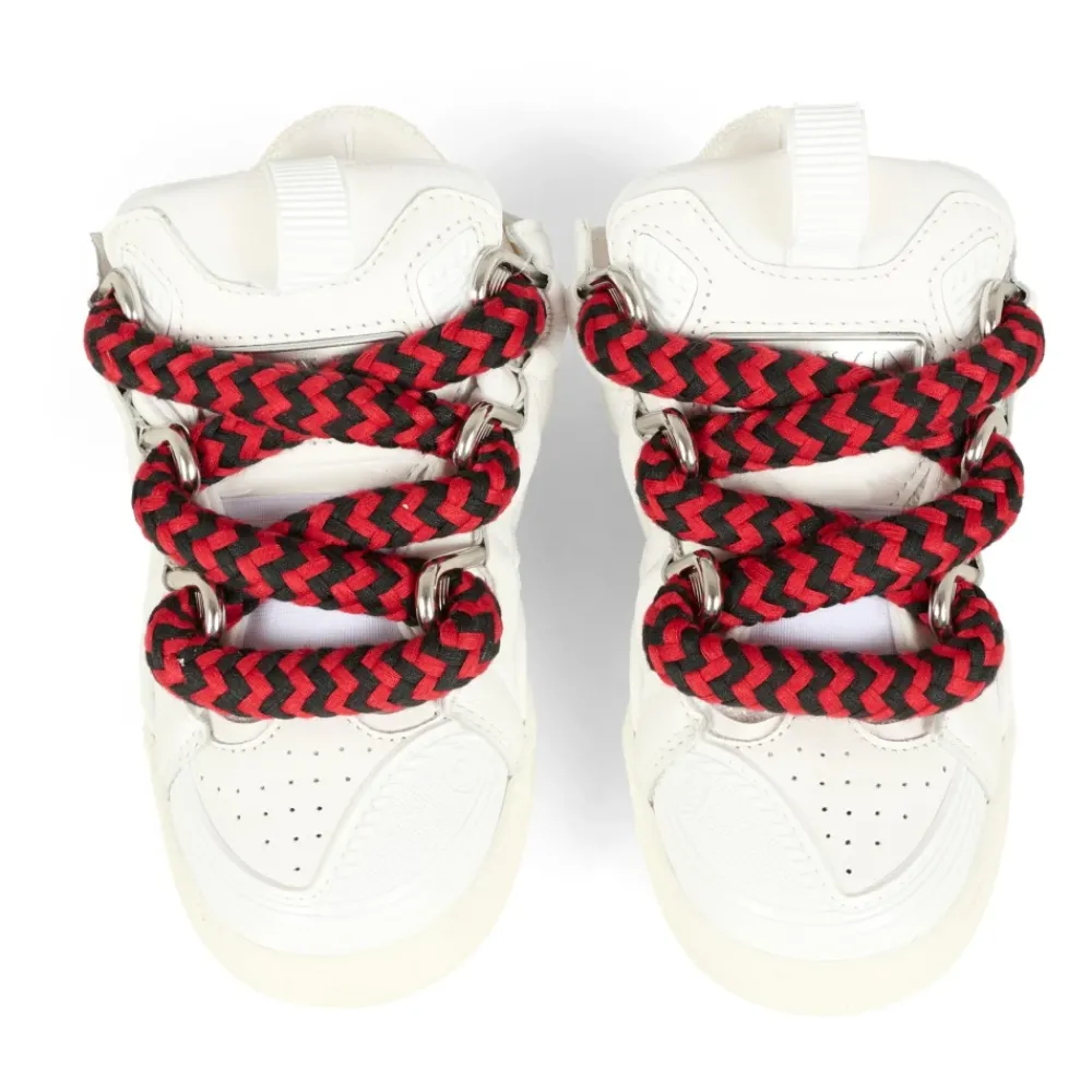 Ontdek deze stijlvolle witte sneakers van Lanvin Petite, gemaakt van leer en stof met een rubberen zool. Deze sneakers hebben een ronde neus, dubbele veters met unieke Curb-motieven en het iconische ‘Snake’ ontwerp. Compleet met het Lanvin-logo zijn deze sneakers een must-have voor de garderobe van je kleintje.