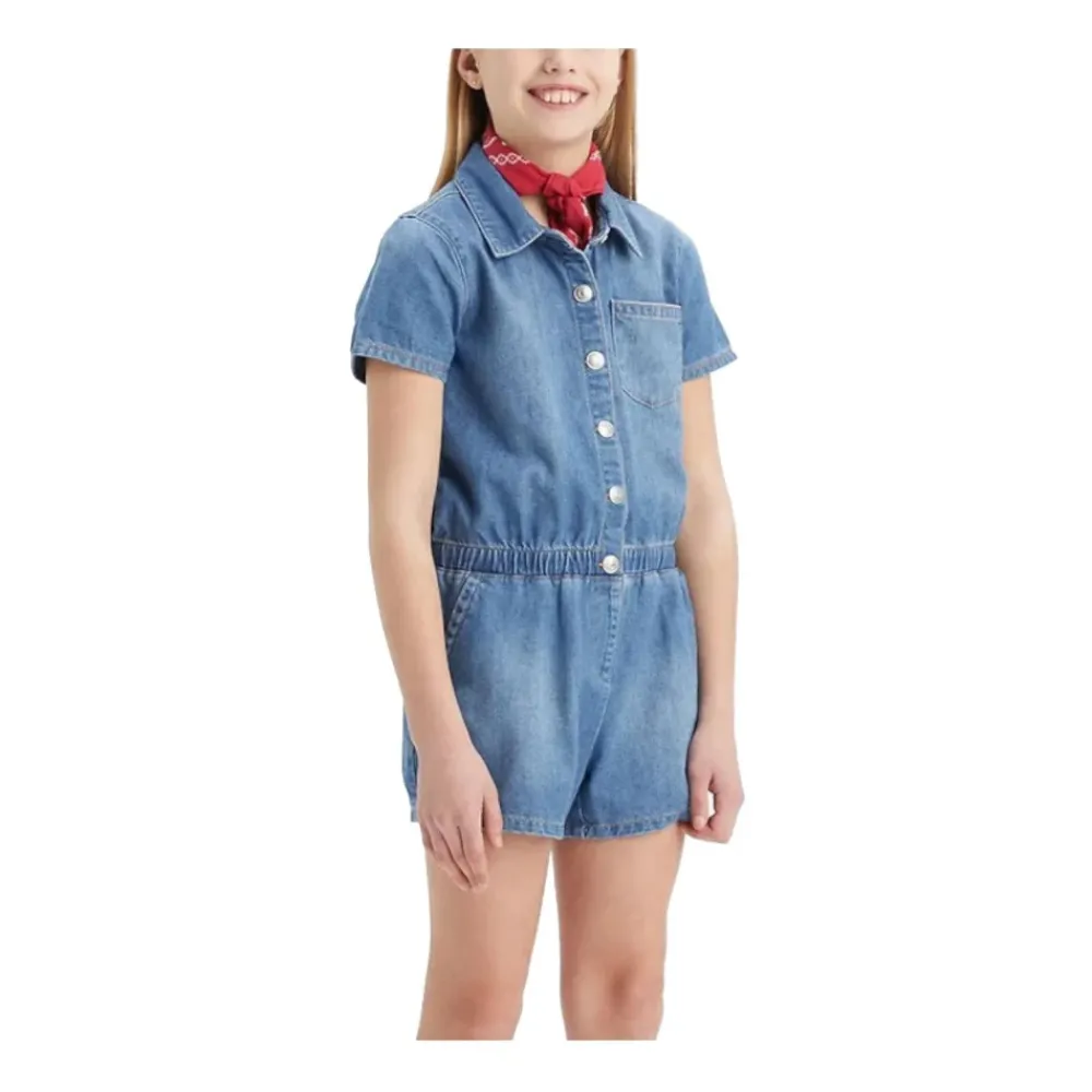De Levi`s Mono Denim Jumpsuit biedt een mix van stijl en comfort met zijn klassieke ontwerp met korte mouwen en tijdloze vintage uitstraling. Perfect voor dagelijks gebruik, deze jumpsuit is gemaakt voor duurzaamheid en gemak. Belangrijkste kenmerken: Blauw | Katoen Denim | Elastische tailleband | Sluiting met drukknoop aan de voorkant | Korte mouw | Zij- en achterzakken | Klein voorzakje | Afmetingen en pasvorm: Regular fit | Samenstelling en onderhoud: 100% Katoen | Machinewas koud, droogtrommel laag