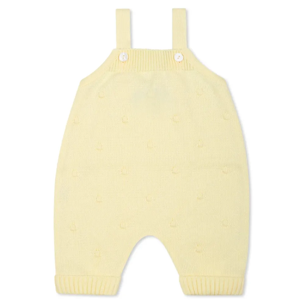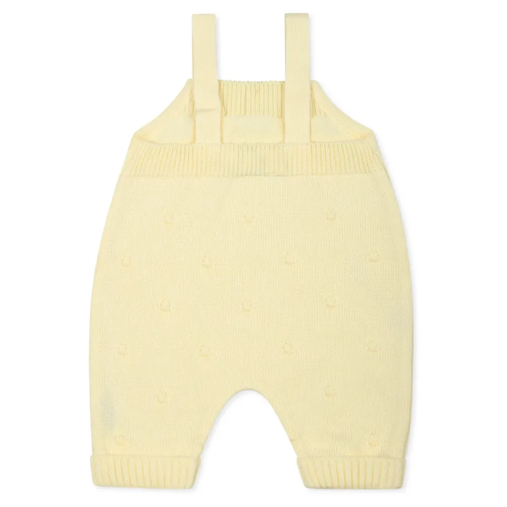 Kleed je kleintje in stijl met deze gele tuinbroek van Little Bear. Gemaakt in Italië van 100% katoen, deze tuinbroek heeft bretels, knopen aan de voorkant, geribbelde enkelboeien en all-over geborduurde stippen. Alleen handwas.