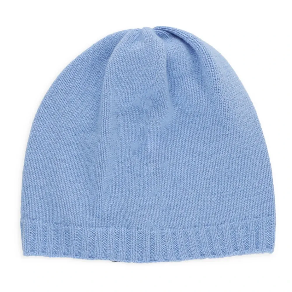 Blijf stijlvol en warm met deze lichtblauwe Moncler Enfant muts van zuivere wol voor meisjes met voorlogo borduurwerk in contrasterende kleur. Perfect voor modebewuste jongens.