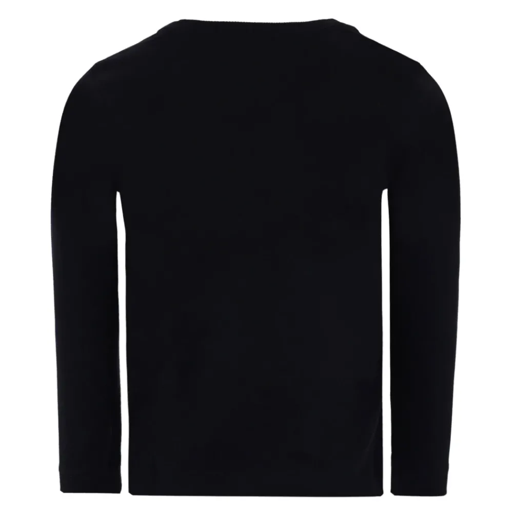 Kleed je kleintje in stijl met deze zwarte katoenen t-shirt van Moschino Kids. Met lange mouwen, een geribbelde ronde hals en een schattige Teddy Bear-print met logo op de voorkant. Gemaakt van 100% katoen. Machinewas op 30°C.
