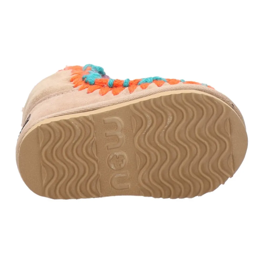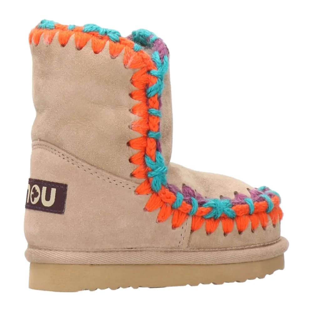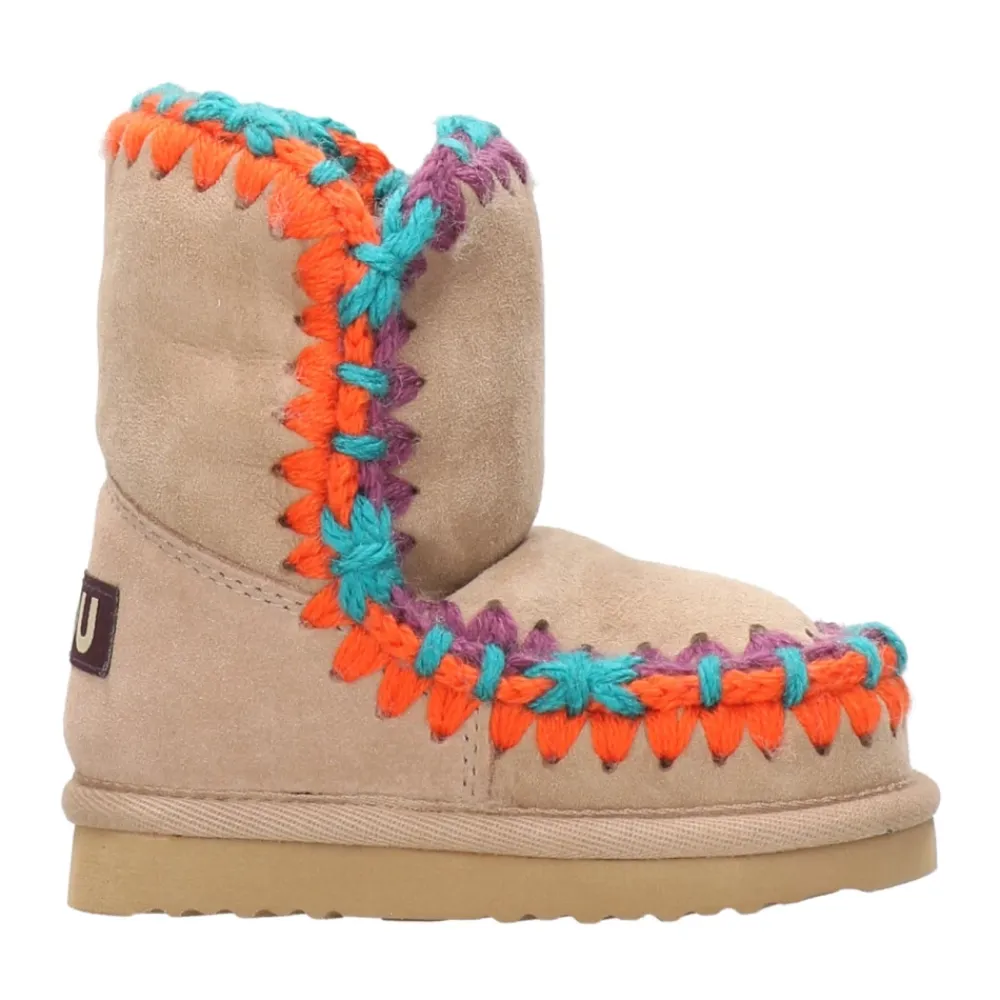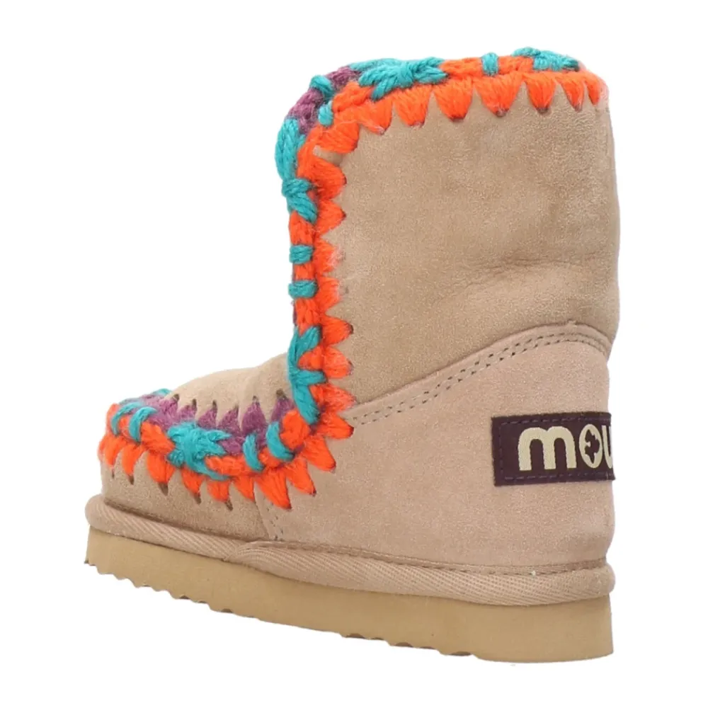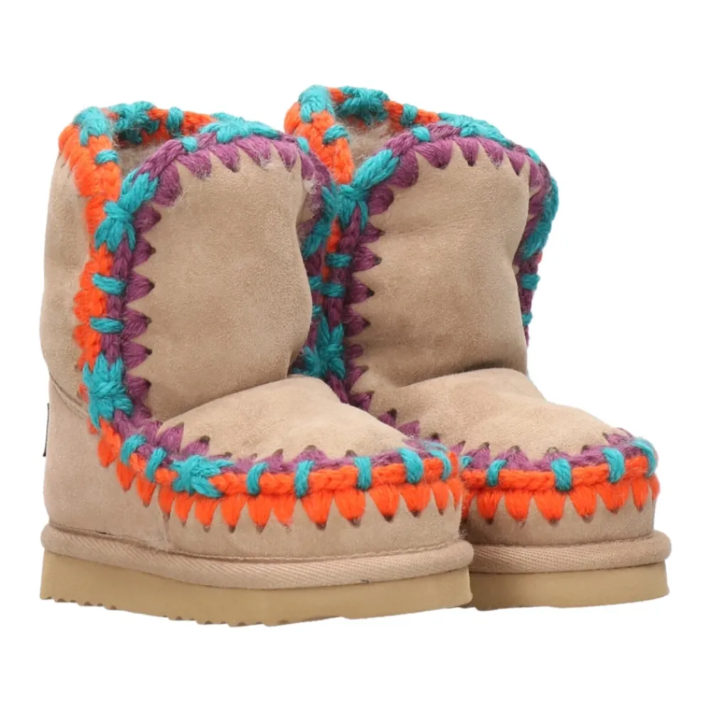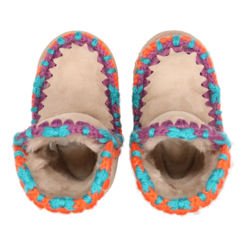 Mou Laarzen Kameel – Enkellaars – Dubbelzijdig schapenvacht – Gehaakte wollen naden – Suède zool.