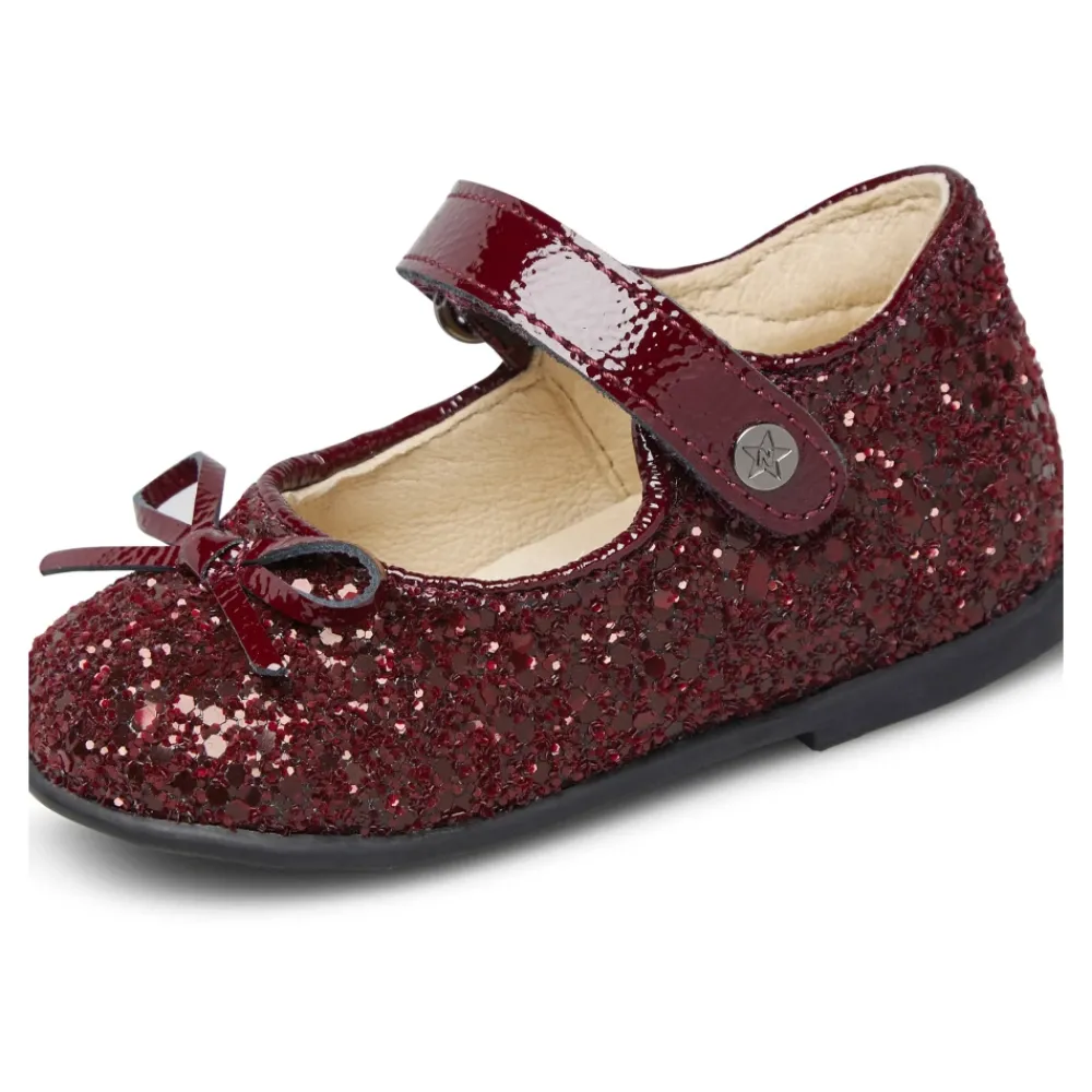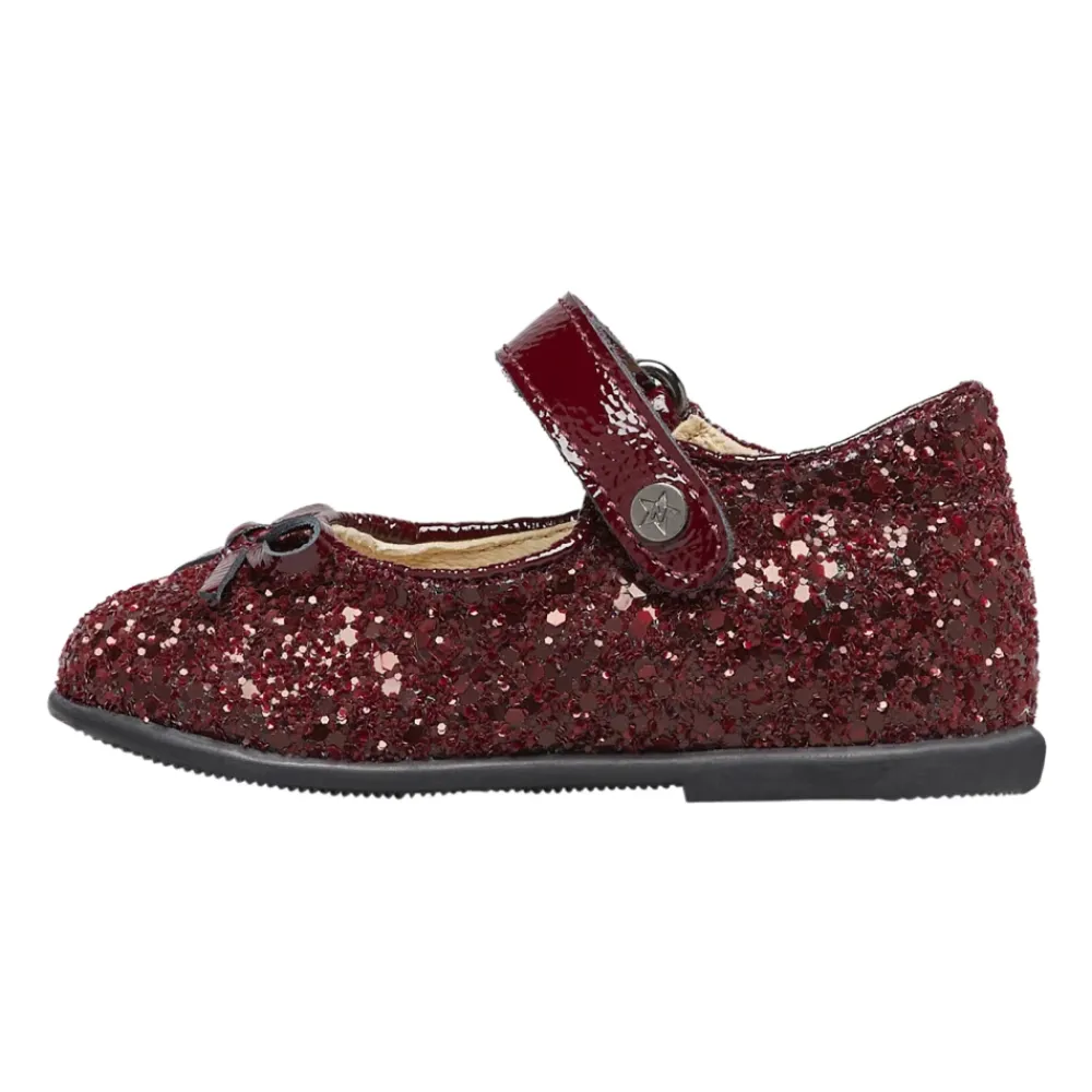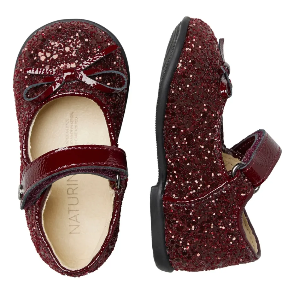 Naturino Ballet combineert leer en glitterstof tot een sprankelende ballerina schoen met een verstelbaar riempje en een antislip rubberen zool, ontworpen voor zelfverzekerde, dagelijkse beweging en speciale gelegenheden. Belangrijkste kenmerken: Bruin | Bordeaux | Leer en glitterstof | Antislip rubberen zool | Verstelbaar riempje | Klittenbandsluiting | Strikdetail op de bovenkant | Glitter bovenkant | Samenstelling & verzorging: Leer (voering en binnenzool) | Glitterstof (bovenkant) | Rubber (loopzool)