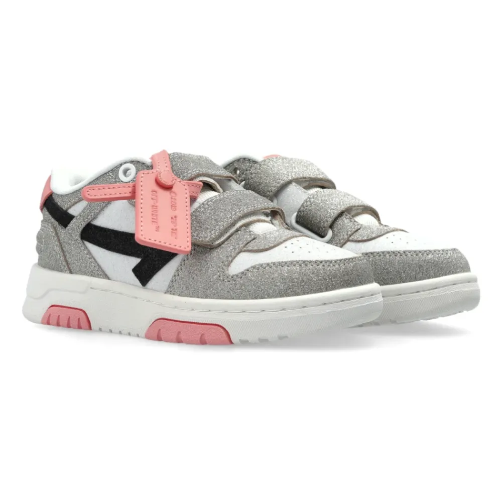 Introductie van de “Out Of Office Straps” sneakers van Off-White. Deze schoenen vallen op door hun moderne design en unieke stijl, perfect voor dagelijks gebruik. Belangrijkste kenmerken: Grijs | Wit | Zwart | Roze | Leer | Textiel | Klittenbandsluiting | Zwart pijlpatroon | Roze paneel met merknaam | Subtiele glitterglans | Samenstelling en onderhoud: Leer | Textiel | Niet gespecificeerd