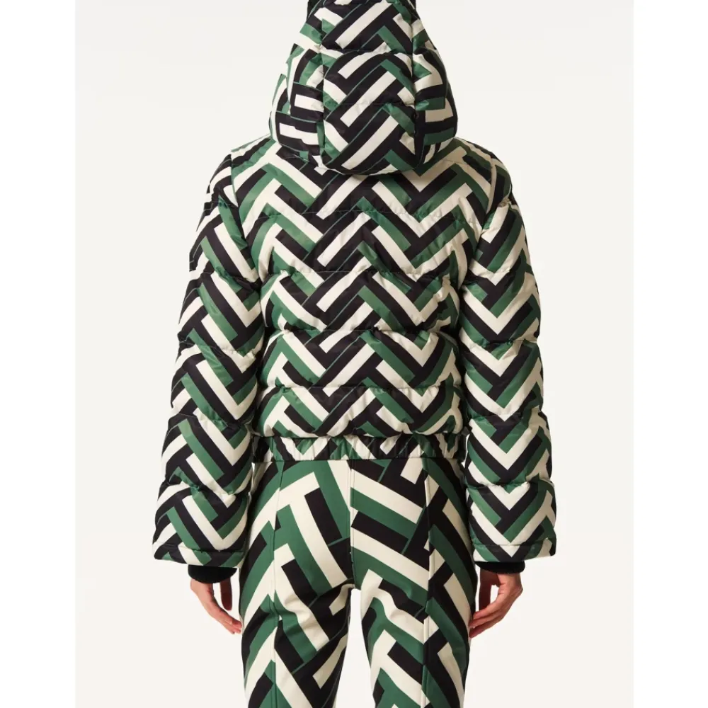 De Perfect Moment Polar Flare Ski Jacket II is een cropped donsjas die klaar is voor de piste en technische bescherming tegen het weer combineert met een uitlopend, modieus silhouet voor prestaties op de piste. Belangrijkste kenmerken: Multicolor | Wafelprint groen | Waterafstotende stof | 700-fill-power donsisolatie | RECCO® reflector | Helm-compatibele capuchon | Intern skibrilvak met doekje | Extern skipaszakje op de mouw | Verstelbare sneeuwvanger | Meerdere interne en externe zakken | Volledige ritssluiting aan de voorkant | Cropped, uitlopend silhouet | Uitlopende mouwen met geribbelde manchetten | Hoge kraag | Drukknoopsluiting om de rits vast te zetten | Afmetingen en pasvorm: Lengte: 54 cm (maat S) | Mouwlengte: 64.5 cm (maat S) | Licht cropped en getailleerd; bedoeld om net boven de heup te vallen. | Valt iets kleiner; overweeg een maat groter te nemen om laagjes te dragen of voor een lossere pasvorm. | Samenstelling en verzorging: Isolatie: 700-fill-power dons | Machinewas op 30°C; niet bleken; niet chemisch reinigen; droogtrommel laag; geen wasverzachter gebruiken; wassen met gesloten ritsen.
