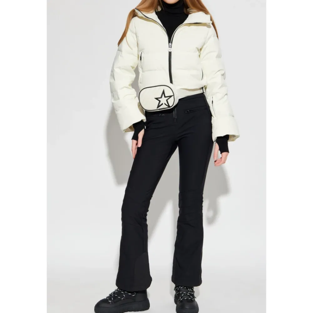 De Perfect Moment Polar Flare Ski Suit combineert hoogwaardige donsisolatie met een ski-klare, uitlopende silhouet voor gebruik in koud weer, zowel op als buiten de piste. Belangrijkste kenmerken: Beige | Crème | Nylon | Thermische isolatie (donsvulling) | Waterafstotende finish | Ademende stof | Helm-compatibele capuchon | Zakken met ritssluiting | Pols- en beenkappen | Skipaszak | Volledige ritssluiting | RECCO-reflector | Uitlopende silhouet | Gewatteerde/donsgevulde constructie | Capuchonhalslijn | Afmetingen en pasvorm: Lengte model: 176cm | Borstomvang: 85cm | Taille: 60cm | Heupen: 89cm | Model draagt maat: S | Slanke, silhouet-accentuerende pasvorm | Ergonomische snit ontworpen om de taille te accentueren | Samenstelling en verzorging: Buitenkant: nylon, elastaan | Vulling: 80% eendendons, 20% veren | Voering: polyester | Machinewas koud (30°C)